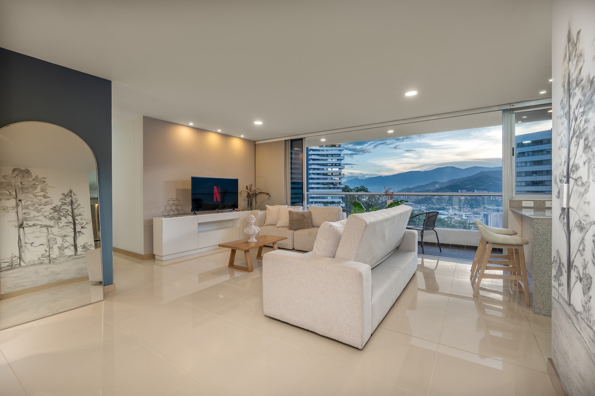 RECENTLY RENOVATED -High-speed internet great for remote work -Brand new A/C -Fully renovated design apartment - King size bed -Breathtaking views of Medellín (trust me, worthwhile to stay here) -16th floor -Unbeatable location in Poblado near to Provenza and Lleras Park -Modern amenities -Spacious living area -Smart TV x 2 -Washer & Dryer Tower -Pool and Gym -Coworking space -Restaurant inside the building -Parking lot -Self check-in -24/7 Security