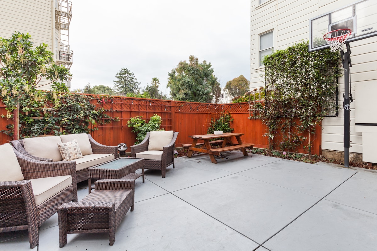 [We follow the most-stringent cleaning and sanitizing protocols. We are an 8-minute walk to a park with a scenic view of SF and a 10-15-minute walk to several city parks.] Watch hummingbirds from the comfort of the zero-gravity chairs in the leafy backyard, and pick lemons for drinks later. Parquet flooring, a decorative fireplace, and the home's original blueprints framed above the sofa make the living room equally welcoming. If you like to cook while traveling, you'll enjoy our newly renovated kitchen with professional appliances. The bathroom has an over-sized tub and a separate shower. As of 7 Dec 2019, the master and the second bedroom contain new queen-sized beds. (There is no longer a sleeper couch in the second bedroom.) Outdoors, although SF is famous for fog, Noe Valley is one of our sunniest neighborhoods; chances are good that you'll be able to lounge in our enclosed yard most of the year. The entire floor (six rooms; private entrance) is yours. We'll be available to offer help if needed. Have breakfast in the nearby neighborhood cafe before walking 10 to 15 minutes to reach galleries, boutiques, and a cinema. Nightlife and restaurants are also close. Explore further via the public transportation hubs in Noe Valley and The Castro. Very easy access to public transportation. Bus stops at our corner. Five minute ride or 10-15 minute walk to transportation hubs. One dedicated street parking space.