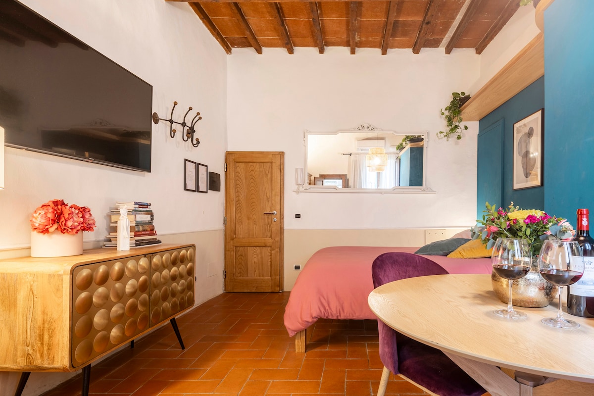 Cosy apartment in one of the most fascinating buildings of the Florentine Lungarni overlooking the Arno River. It is located in a historic Private Museum, one of the most particular places in the Oltrarno, in the most authentic neighborhood of the city. Apartment completely sanitized. ATTENTION: The building and the apartment DO NOT HAVE SELF CHECK-IN it is always important not to lose or forget your house keys, especially at night. CIN IT048017C2TOR5XVML CODICE CIR 048017LTN6204