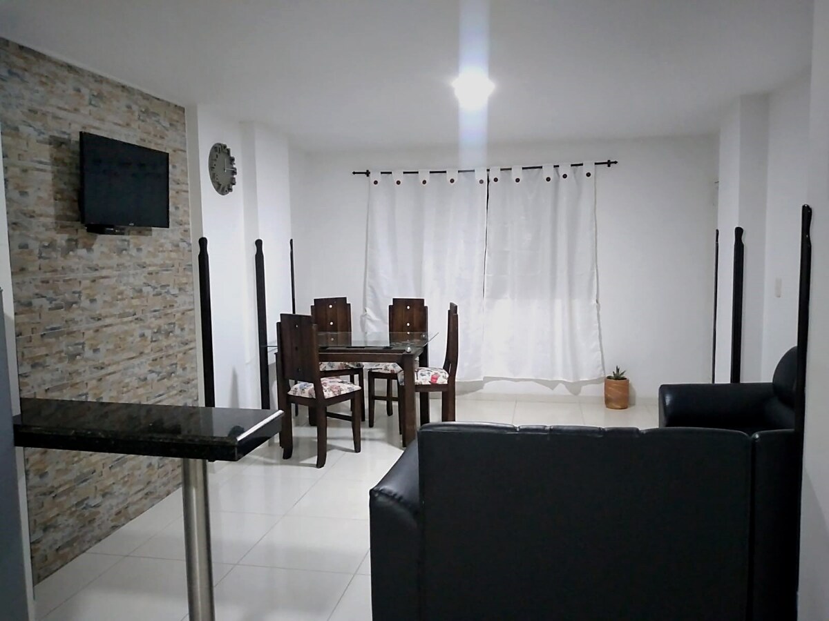 Spacious and cozy brand new apartment in the tourist municipality of Santander, a few blocks from the main park, Plaza de Mercado shopping center and its main attraction, Gallineral Park, where you will find various options in extreme sports and tourist plans. Relax with the whole family in this quiet place to stay.
