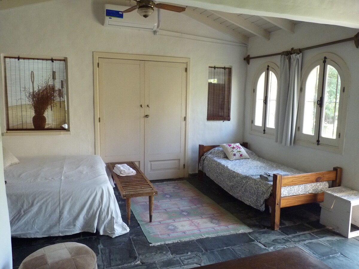 Stay in this ideal accommodation for your family to be close to everything, and at the same time immersed in a residential and very green area. Close to cafes and attractions. Our house is very cozy and functional. It has 4 bedrooms, three of them with double beds. It has one en-suite bedroom And on the third floor, there is a spacious playroom with an ideal place to work with excellent Wi-Fi and a large TV. It has a dreamy reception with access to a comfortable garden with a large quincho.