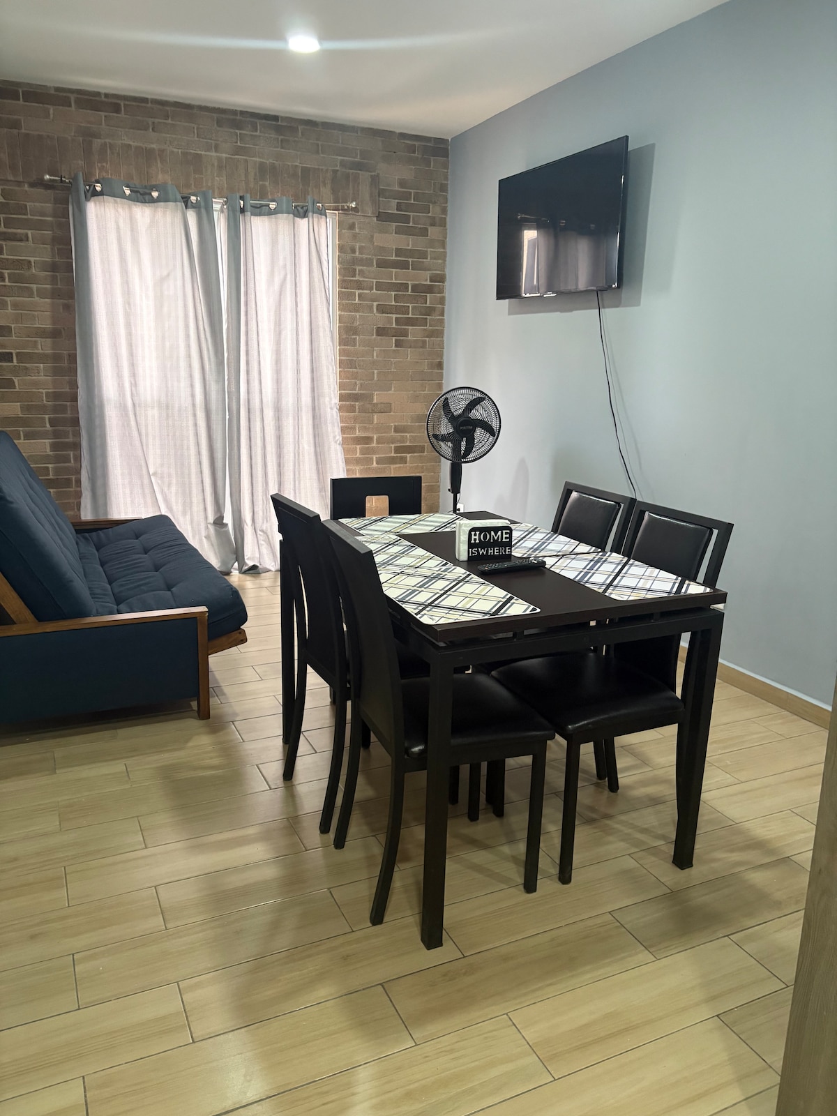 We're committed to maintaining a strict disinfection process for each space. The house is new, with all amenities and furnished. It has private parking, broadband internet, a service patio, living room, dining room, kitchenette, refrigerator, basic kitchenware and utensils, a washing machine, and three bedrooms, as well as an additional room for multiple uses. For safety and hygiene, it has mosquito nets on all doors and windows and fans in every room.