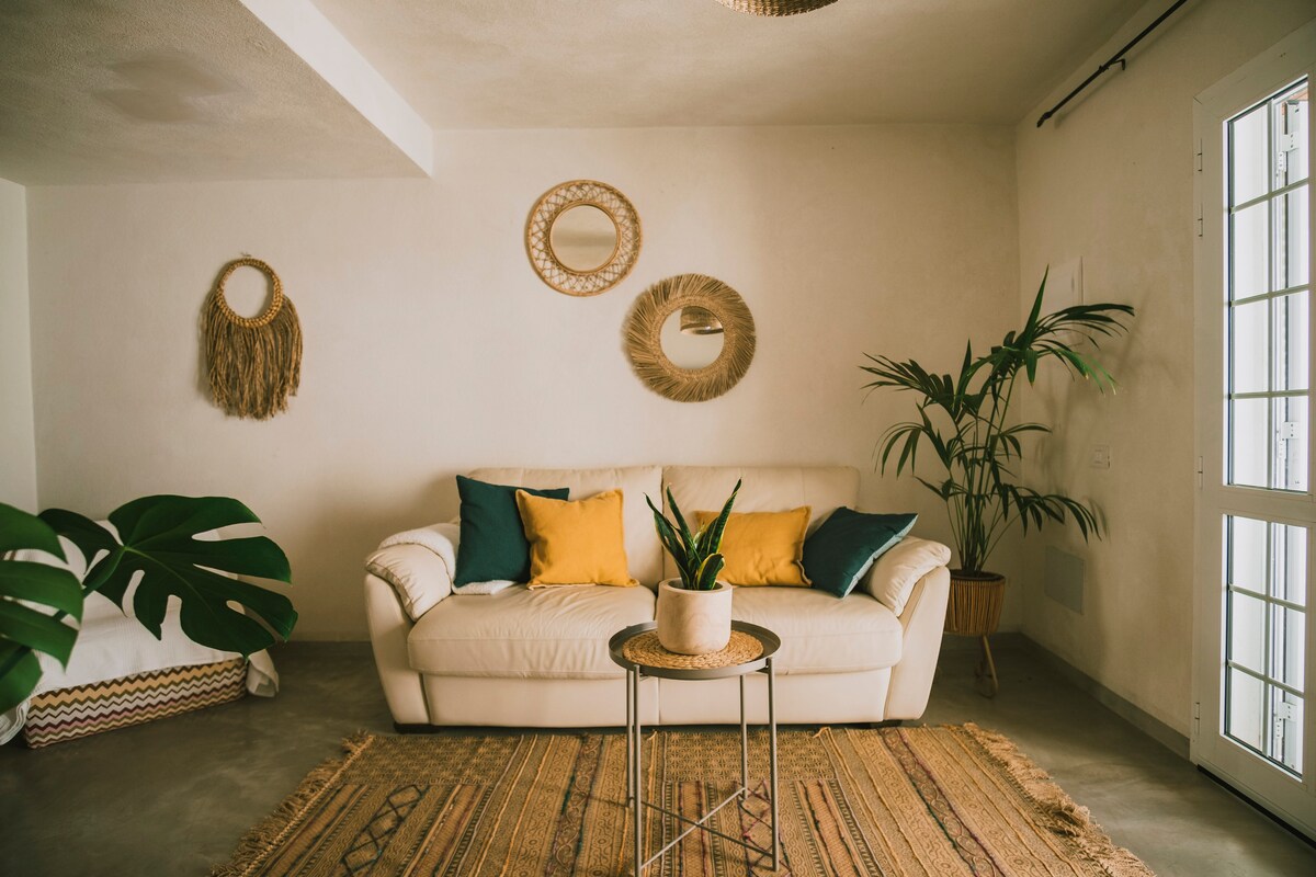Un precioso apartamento de diseño, recientemente renovado con con impresionantes vistas de atardecer sobre el Océano desde su terraza. Primera línea al mar. Después de un largo día en la naturaleza, descansa en la cama King size (180x200cm) ----- A lovely apartment recently renovated with stunning views of the sunset, first line over the ocean from the terrace. Relax while reading, eating, or doing yoga. After a long day in nature, rest on the King size bed (180x200cm)