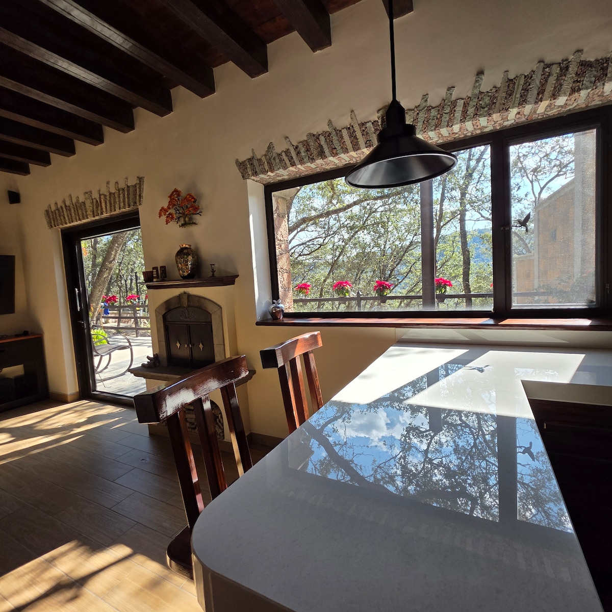 Las Encinas is located in the heart of the Sierra de Santa Rosa, Guanajuato. 🌲🌳 The space is designed for 5 people for a comfortable stay, with the option of 3 additional guests for an extra charge per night. We want our guests to disconnect from the digital world in a space surrounded by nature...