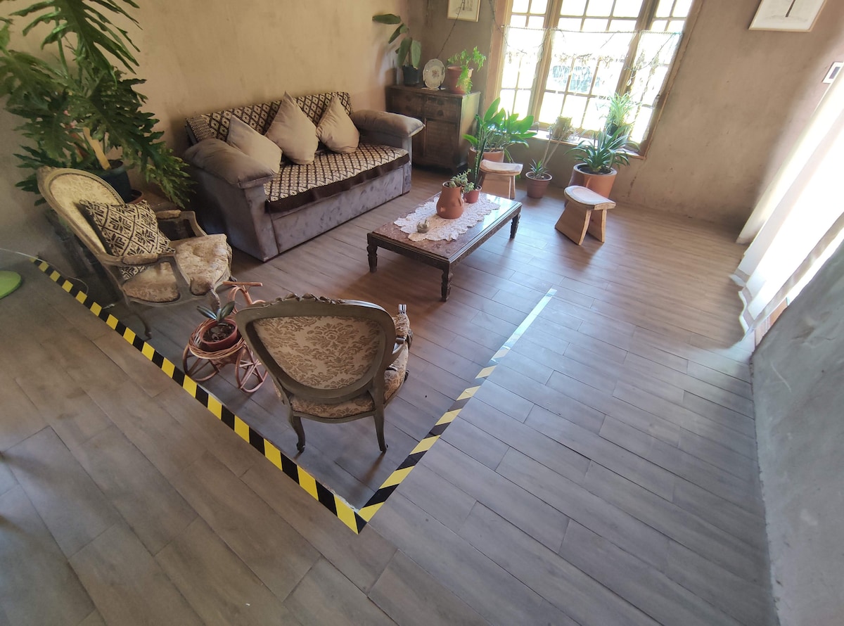 Beautiful and spacious cabin located in the commune of Mostazal, 50 minutes from Santiago by southern access or highway 5 south and 5 minutes from the Monticello casino. Enjoy 2000 square meters of nature, ideal for spending a few days relaxing and in contact with nature, away from the city. We offer our butterfly-style "refuge cabin" with 2 bedrooms with double beds, two private bathrooms with all amenities included (towels, toiletries, and a hairdryer).