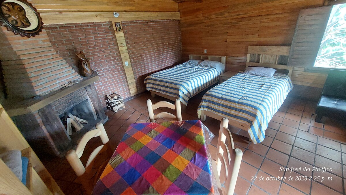 Huitzlilin is a cabin of "Bosques Inn" is a unique space to be in contact with nature and spend some time of peace and quiet, the cabin is located in the forest and close to a river, from there you can enjoy how wonderful it is the singing of the birds, the sound produced by the water of a river that runs nearby, ideal for hiking, with incredible landscapes, the cabin is located 5 minutes by car from downtown San Mateo Rio Hondo, 30 minutes from San José del Pacifico