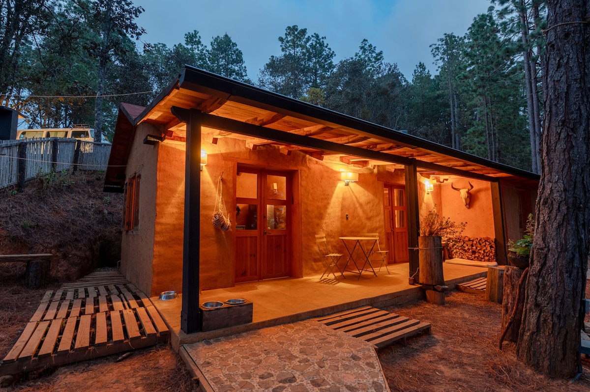 Escape to Casas Redondas, El Alto Paz, a peaceful handcrafted adobe-style cabin nestled in the forested hills of San Sebastián Río Hondo, overlooking the Sierra Sur mountains & just 25 minutes from San José del Pacífico. With sweeping views of the Sierra Sur mountains and a serene, off-grid rhythm, this handcrafted hideaway is ideal for mushroom and nature lovers, spiritual seekers, temescal and those drawn to the slower pace of mountain life.