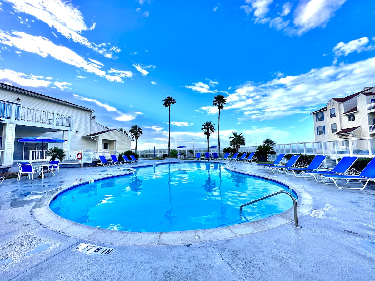 Come and enjoy your beach vacation on the Gulf of Mexico! Located on the 6th floor, with elevator access, this condo has stunning views of the beach, public pier, and South Jetties. Steps from the beach, this 2 BD, 2 BA condo is perfect for families, couples, or solo travelers. This unit sleeps 6, has a stocked kitchen, smart tvs, a pool, hot tub, fire pit, and grill. Wrap up your perfect beach day, by watching the sunset from your private, beachside balcony! BOOKER MUST BE 25 OR OLDER.