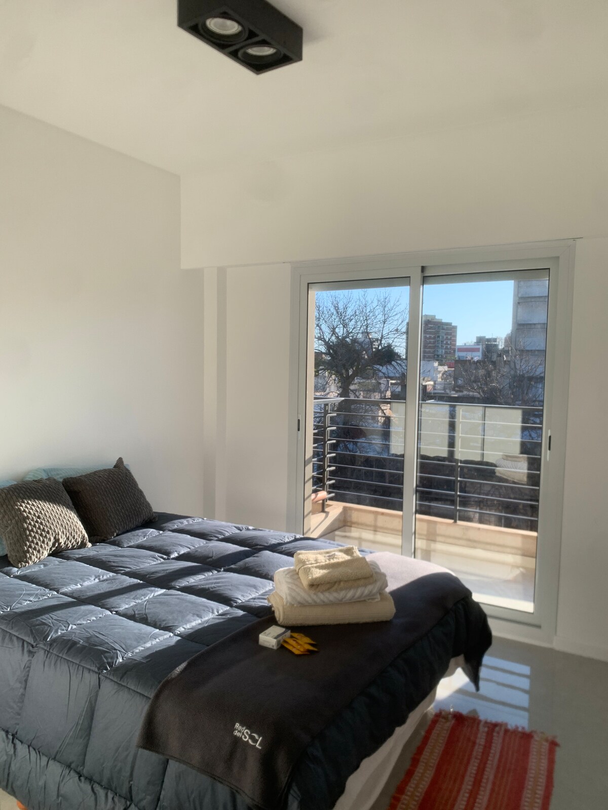 New and bright Monoambiente with large balcony on the front 🌇 • Your place in Rosario Excellent environment and location. Equipped with hot/cold air conditioning, black out curtains, fiber optic WiFi, full kitchen and everything you need for your stay. We want you to feel at home and be able to discover Rosario at your own pace🙌 We prepare this space for you to enjoy our beloved city We are waiting for you! Free parking is available nearby. We don't have a garage.