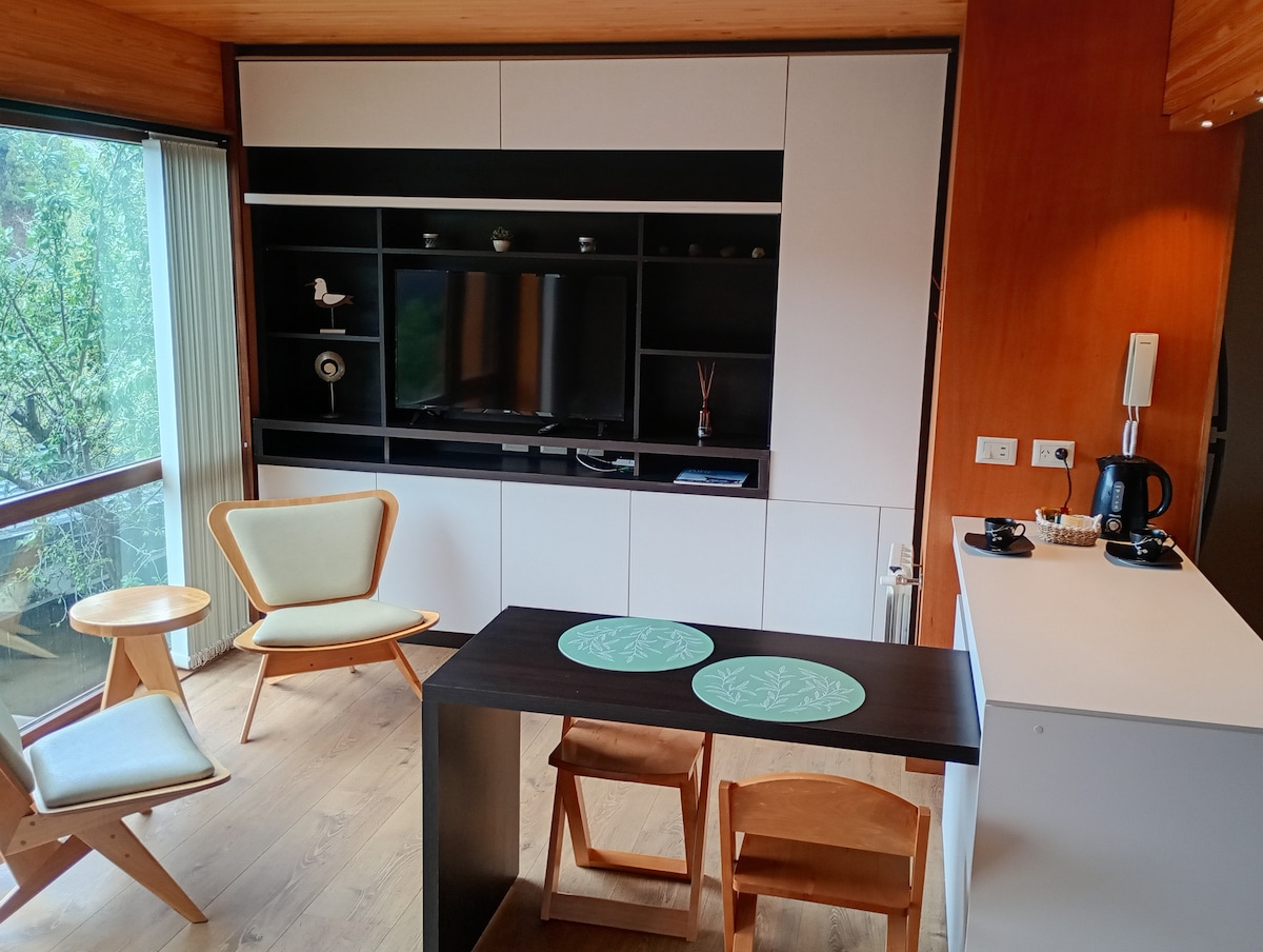 Beautiful apartment set up like a cabin, all on the ground floor. Excellent location! Comfort, tranquility and safety. Very bright, surrounded by greenery, silence and next to the mountain. 5 blocks from the lake, downtown, the bus station and 3 blocks from the ascent to Mirador Bandurrias!
