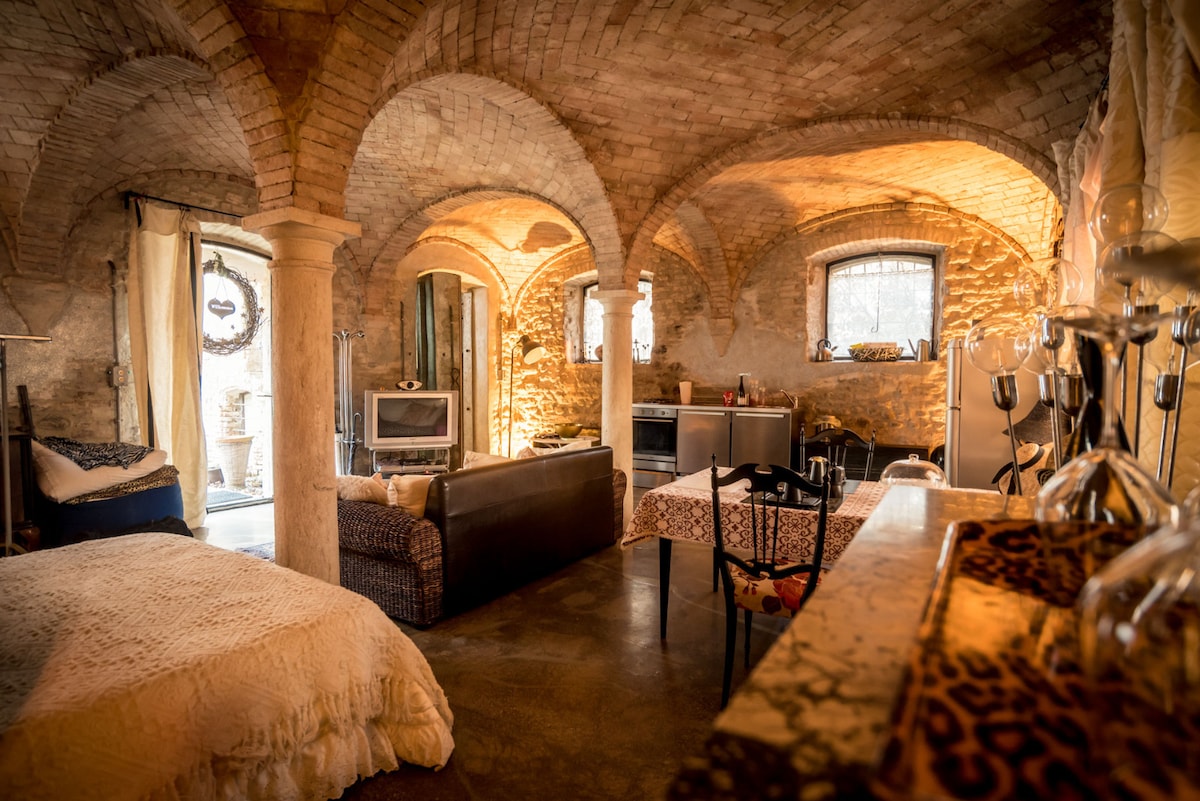 For those passing between Parma, Mantua, Sabbioneta, Verona, Lake Garda, you must stay in a historic building in Casalmaggiore, formerly a convent in the 1600s and near the Po river embankment. There are 4 apartments (the photos are of 1) in complete conservative restoration overlooking the convent park with a splendid series of loggias from where you can enjoy a timeless view and experience romantic emotions in the rooms with enchanting faces and frescoes. Air conditioning