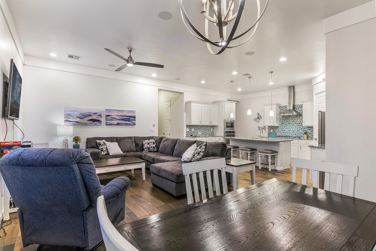 This fully-furnished modern home is perfect for weekend getaways or longterm stays. With 4 bedrooms and plenty of space The Dove Escape offers the comfort of home with a luxury feel. This stylish modern space is perfect for families, groups, or anyone seeking a retreat at the end of long day in Las Cruces or a break from the road. The Dove escape is minutes from NMSU and the University Corridor with all it has to offer.