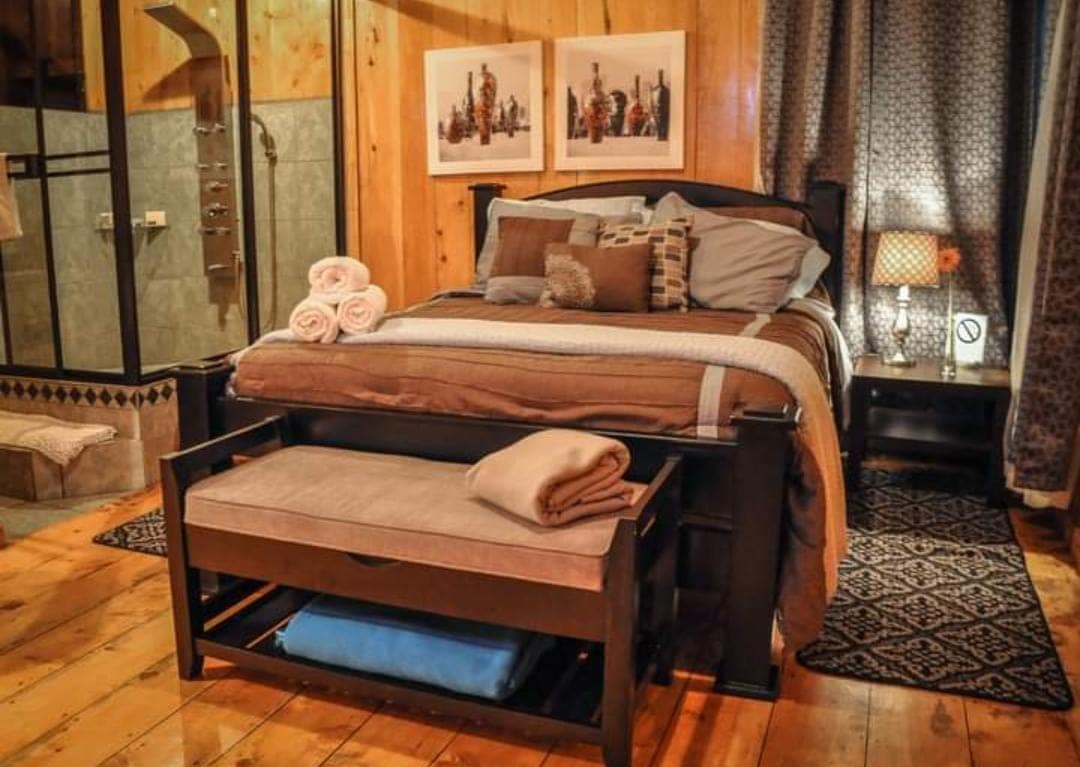 La cabaña está totalmente equipada: un mirador espectacular totalmente equipado con un sofá cama, una mesa para cenas románticas, un escritorio de utilizar cómodamente la computadora, una cocina completamente equipada con su desayunador, una sala con otro sofá cama, chimenea eléctrica, una cama queen con sabanas de puro algodón, Smart TV, un baño completamente equipado, closet, caja fuerte, secador de pelo, todo con el fin de que la estadía sea lo más cómoda posible.