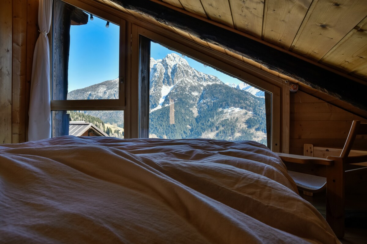 Lovingly restored barn with sauna and captivating mountain views. Carefully renovated by hand, this enchanting retreat artfully blends rustic authenticity with refined contemporary comfort. Airy, sunlit spaces highlight the beauty of original wooden beams, while expansive windows, including a breathtaking panoramic glass wall upstairs, immerse you in the majestic Dolomites, inviting tranquility and connection with nature