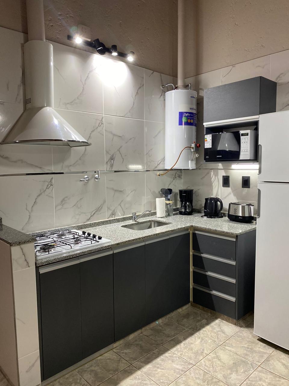 It is fully equipped for 2 people. It has a kitchen-dining room, bathroom and 1 bedroom with a double bed. Private balcony, covered garage, and barbecue in a shared space. It has: dishes, linens, TV and internet. It is located 1 km from the center, 2 blocks from the city's main casino, 1 block from the hospital and 8 blocks from the bar, restaurant,
