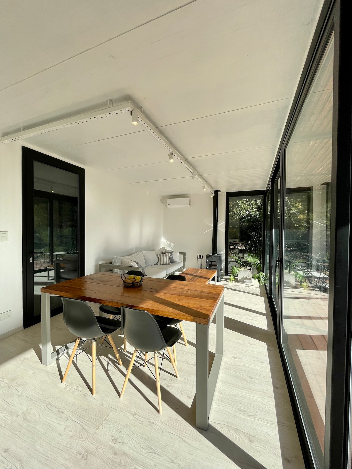 40m2 housing module, designed to be inhabited by tourists and built in 2023. It has a bedroom, full bathroom, and a kitchenette, living room, and dining room. In addition to the nice garden, there is a gallery equipped with two seats and a table to enjoy the Mendoza sun... It is located 7 minutes by car from downtown. And on the same plot is my parents' house (about 60 meters away), they want to be available when needed!