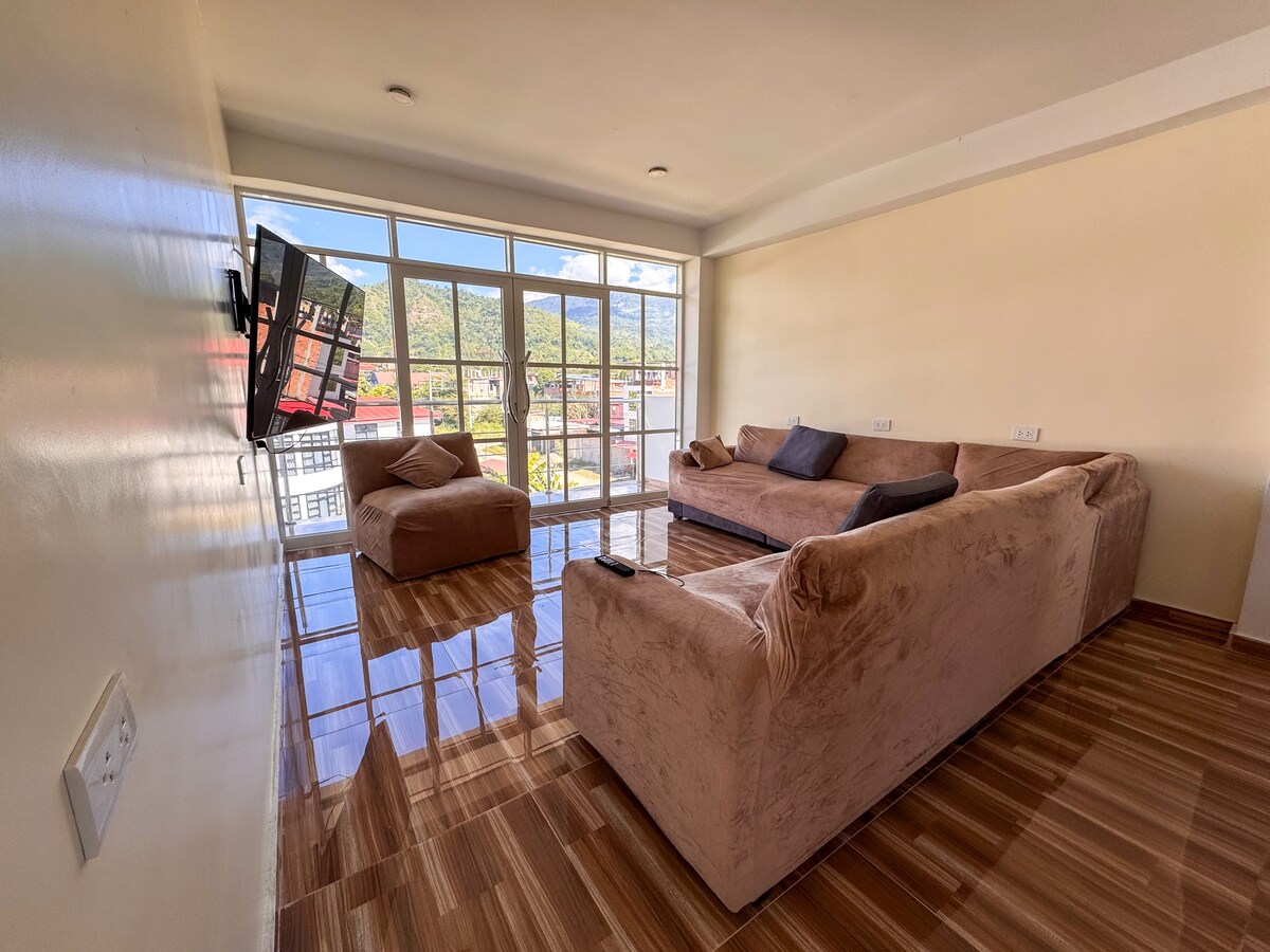 “Have fun with the whole family at this stylish home, located in the heart of La Merced. Enjoy nature and comfort in our modern and cozy apartment. Features: - 2/3 bedrooms with comfortable beds - 1 bathroom. - Living room, Dining Room and Balcony - Appliances -Living area with TV - Mountain view - Central location, close to restaurants and tourist spots Amenities: - Tourist assistance and recommendations -Recojo from the Terminal