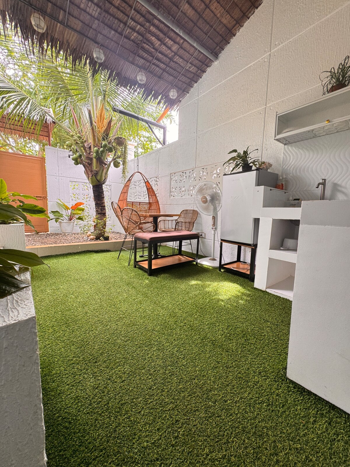 Liza’s Pacific Palms Guest House, just updated new 2025. Everything is new from the King size bed, living room furniture, and the 43” and 32” Smart TV’s. Also the guest house has its own dedicated hi speed fiber optic WiFi, for total privacy. Kitchenette is fully stocked with all new appliances (microwave, cooktop, rice cooker, refrigerator) pots and pans and utensils. We’re only 300 meters from the Beaches, and a 5 minute ride to the Hagnaya ferry boats, 🛺 see photos 😃
