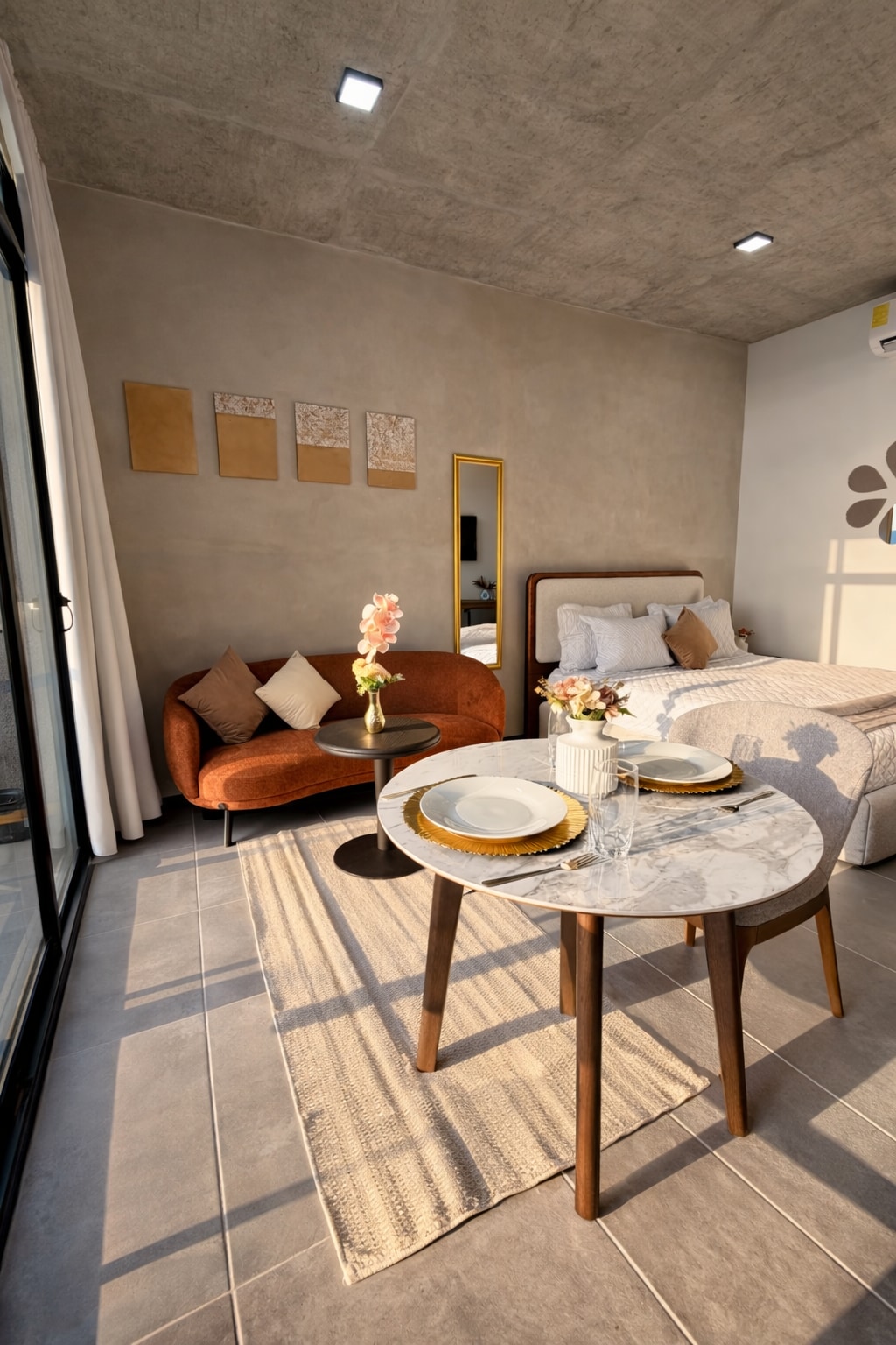 Nuestros estudios en Zama Homes invitan al descanso y la tranquilidad, ofreciendo un refugio sereno. Localizados en la mejor zona de La ciudad, cuentan con una vista espectacular y amenidades pensadas para tu comodidad, creando un espacio perfecto para relajarte, trabajar o simplemente disfrutar del momento. Cada detalle ha sido diseñado para que tu estancia sea acogedora, armoniosa y memorable. Padma Homes: calma y bienestar en el corazón de la ciudad.