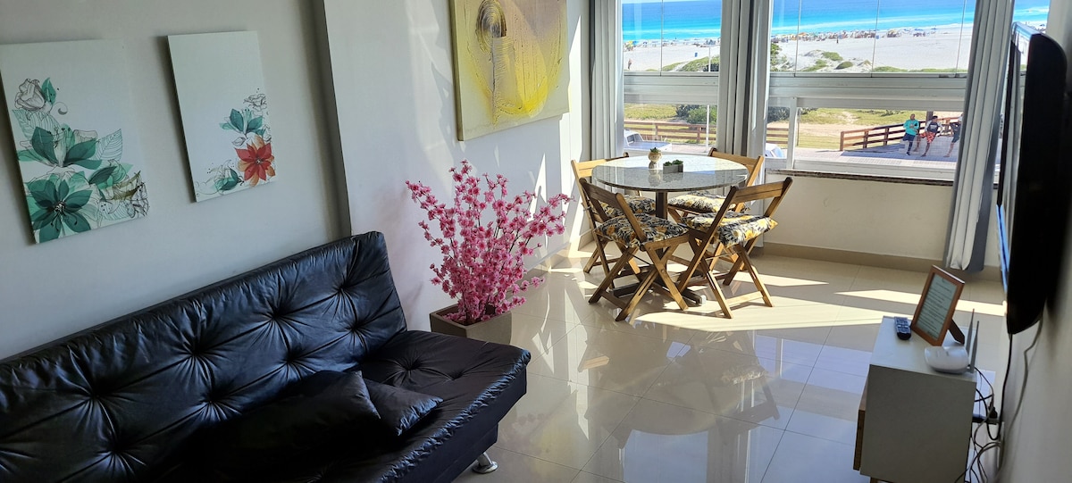 Studio apartment, new bathroom, new kitchen, equipped with a fridge, microwave, cooktop, kitchen utensils, coffee maker, sandwich maker, Wi-Fi connection, Smart TV with Netflix, double bed (standard Botafogo mattresses) and extra single mattress ("inflatable" in case of 3 guests). Located 700 meters from the edge of Praia Grande, and 250 meters from Pontal do Atalaia, to enjoy the most famous sunset in the lake region, and have access to one of the most beautiful beaches in the world, As Prainhas!