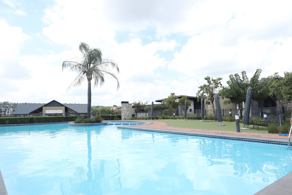 A Luxurious ground floor centrally located apartment ideal for a great getaway. Just steps away from the well-known Modderfontein Reserve. A 2 bedrooms,2 bathrooms apartment. Smart TV with Netflix. remote ceiling fans. -1km to Busamed Private hospital. - 10min to Mall of Africa. - 4 min to Modderfontein golf club. -5min to Marlboro Gautrain -5min to Greenstone shopping mall - 6min to Gallagher convention center -15 mins to Sandton City - 12 minutes from OR Tambo International Airport