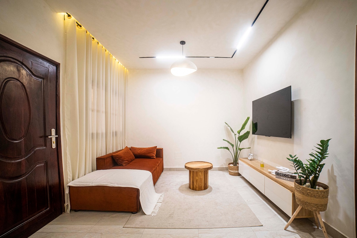 Nougat Business Apartment – Élégance afro-chic au cœur de Lomé Situé à Adewui, en plein centre-ville de Lomé, le Nougat Business Apartment marie subtilement l’élégance française et le charme africain. Pensé dans un style afro-chic aux tons chauds et naturels, cet appartement a été conçu pour offrir une expérience à la fois professionnelle, confortable et inspirante. Chaque détail a été imaginé pour que vous vous sentiez à la maison tout en profitant du confort d’un séjour haut de gamme.
