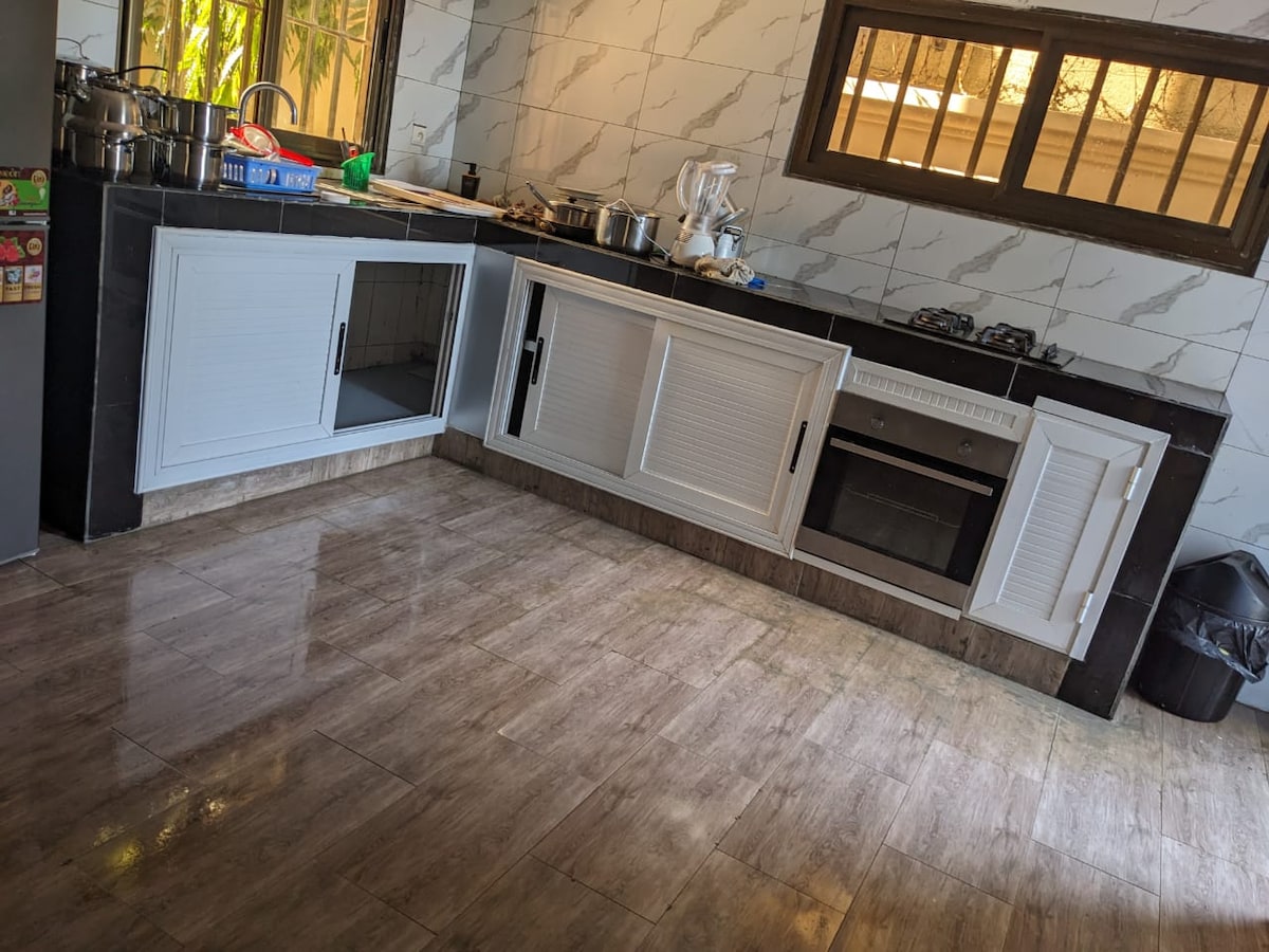 Like our couple, this beautiful and spacious house combines Togolese hospitality and French authenticity. It is composed of: - a comfortable, chic and refined master suite (bathroom, hot water, washing machine, dressing room, air conditioning) - 2 large air-conditioned bedrooms with bathroom, wardrobe - A large modern living room, air-conditioned and elegantly and refinedly equipped, with an American-style kitchen and a comfortable living room - guest toilet