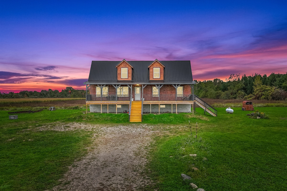 Surrounded by woods, creating a secluded haven; yet only 5 minutes from Marlette. This spacious log cabin features an open floor LR, 75”TV, Fully equipped kitchen, Dining area-Seats 8, 1 Ofc (Free Wi-Fi), 1 king BR, 1 Full Bath, W/D Machine RM, Gas Firplace, A/C+Heat, Upper Level Loft area/play, 1 queen bed loft RM, 1 queen BR, 1 3/4 Bath, equipped with a backup generator to ensure power remains available during any potential outages. Perfect family gathering place and pet-friendly.