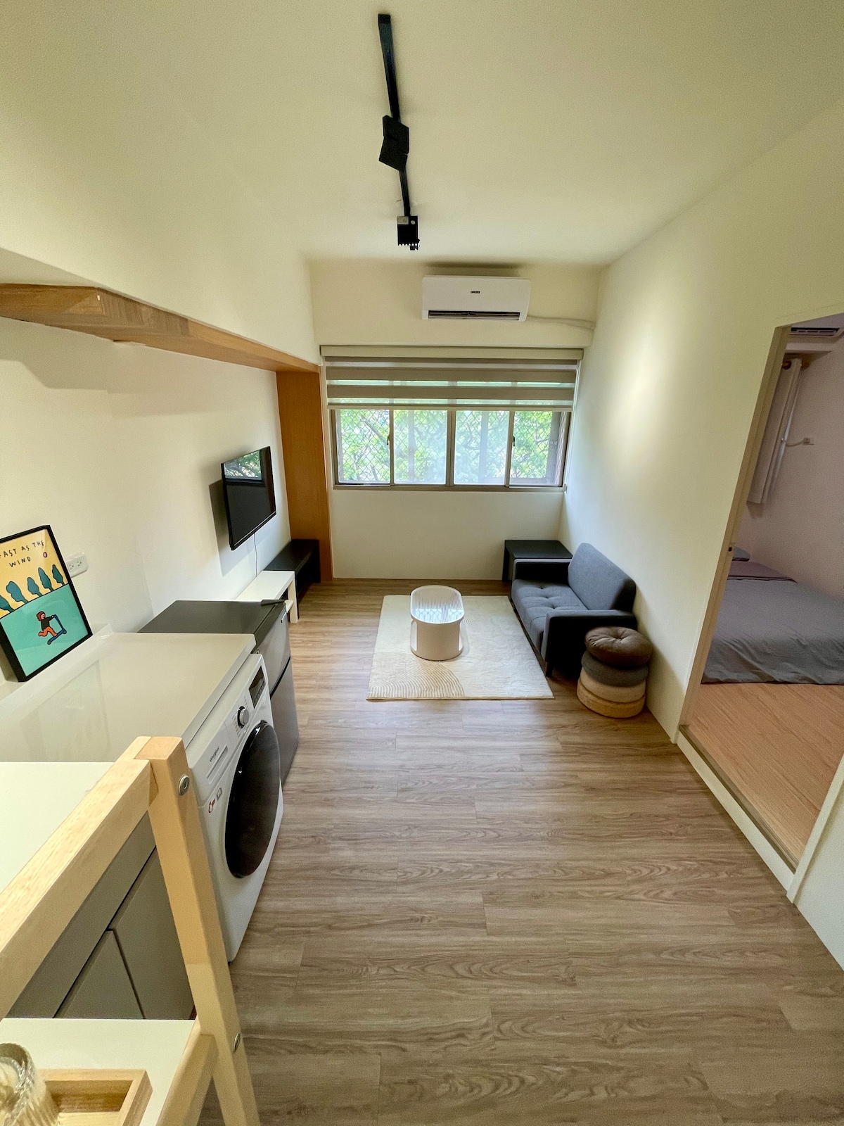 The junior suite is presented in a minimalist style, with no extra decoration, but everything you need during the trip. The space is small but just enough for up to 4 people, ideal for solo travelers, couples, friends, or small families. The house is located near Kaohsiung Arena Station, where living is super convenient, and daily shopping and tasting of food and snacks are easy. Downstairs is the park, where you can walk slowly in the morning to breathe fresh air and sleep peacefully at night. ✔️ 2-minute walk | 7-11, Family Mart ✔️ 10-minute walk | MRT Arena Station, Hanshin Arena Department Store, famous Longhua Market ✔️ 15 min walk | Ruifeng Night Market, Aozidi Park House features: • A cozy double bedroom • A tatami-style room with two Japanese single mattresses • Compact living room with Japanese cushions and sofa, great for small gatherings and chatting • New washing and drying machine, convenient for long stays • Air conditioning, Wi-Fi, TV, blackout curtains, and a clean countertop • Toothbrushes, shampoo, shower gel, bath towels are all available (※ No replenishment for multiple days/No small towels provided) • No smoking, please keep the room fresh and comfortable • To ensure a clean and tidy space for every guest, please notify us at least 22:00 the day before if you need to check out late, and a fee of NT$300 per hour will be charged (up to 14:00). Late check-out is subject to the cleaning schedule of the day and cannot be guaranteed, please understand
