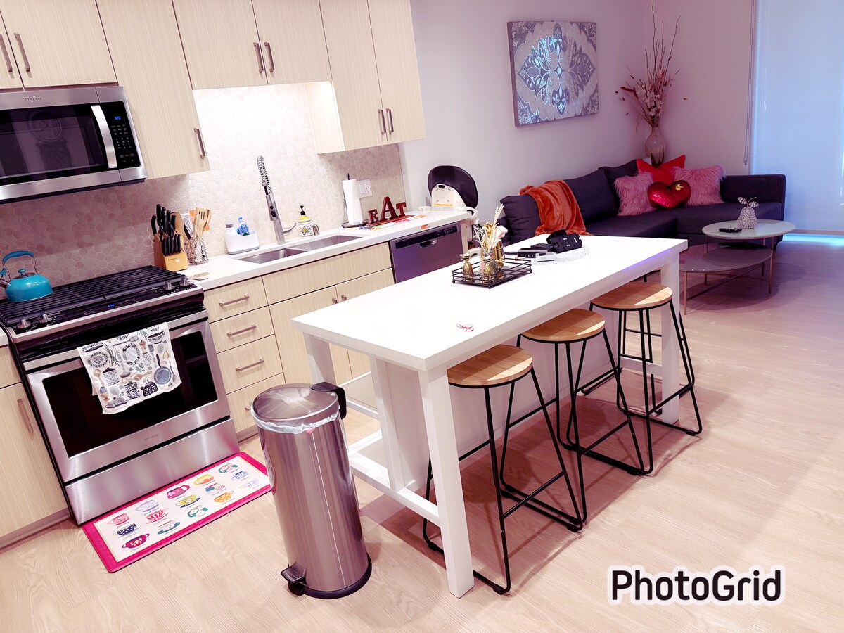A modern wonder w/ stainless steel upgraded appliances. A high end luxury complex. Approximately 925 sq ft. Cali KING Bed. Smart 55” TV in the bedroom. A 65” Smart TV in the living room. You can log-in to your personal Smart TV Apps. Private patio with table and two chairs. In unit washer/dryer (detergent). Perfect for a family or couple getaway, business trip or long stay. Always clean and ready when you arrive. Prime location in Irvine near 405 freeway. Please ask us any questions.