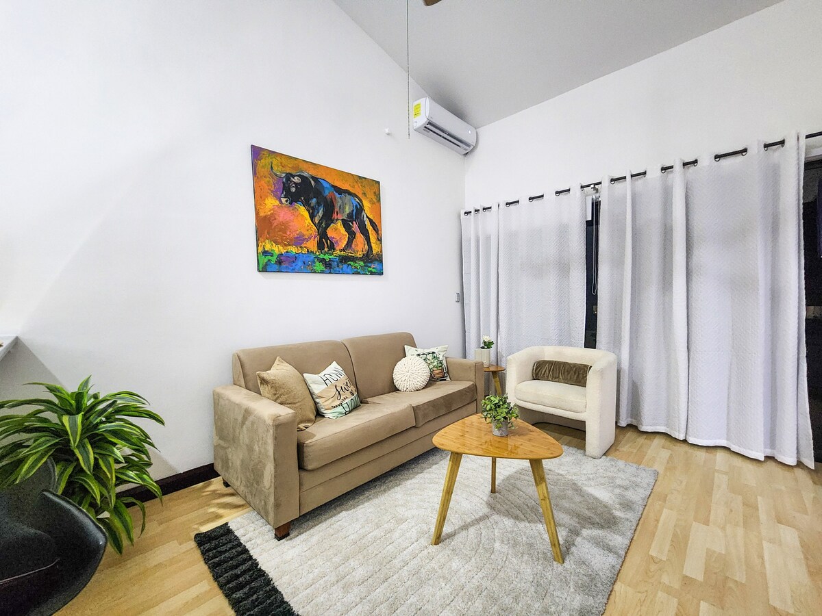 ✓ King Size Bed con Eurotop ✓ Top location(Multiplaza,Cima,Distrito 4,Goodness Dental y otras, McDonalds, Starbucks y más) ✓ Canasta de Bienvenida ✓ FAST WIFI ✓Oficina privada (coordinar disponibilidad) ✓50¨Smart TV Roku ✓ Lavanderia Studio#1 Un Chalet con diseño moderno y único, el espacio está diseñado para la comodidad, confort y funcionalidad de nuestros huéspedes, inspirados en el diseño contemporáneo y tropical. Será un gusto recibir