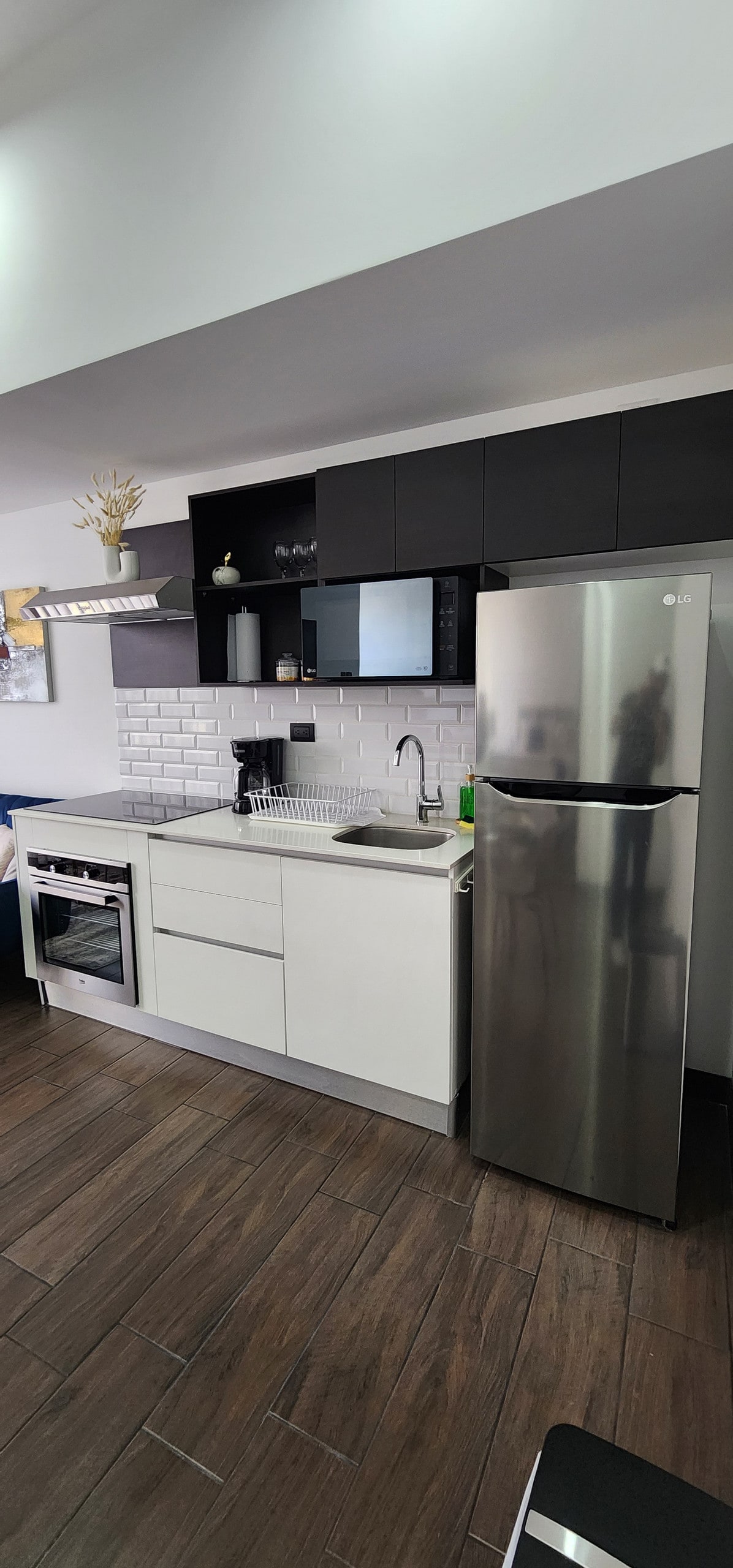 Lofts Cayalá. Con un diseño de doble altura, dormitorio con cama queen, baño completo y walk-in closet, plancha de vapor. En el primer nivel se encuentra sala, comedor, cocina totalmente equipada, sanitario y área de lavandería con lavadora y secadora. SERVICIOS: Wifi, área social, self check-in y estacionamiento gratuito. COCINA EN LA HABITACIÓN EQUIPADA CON: Barra desayunadora, refrigerador, estufa, horno microondas, cafetera, ecofiltro, vajilla, cristalería, cubertería y utensilios de cocina.