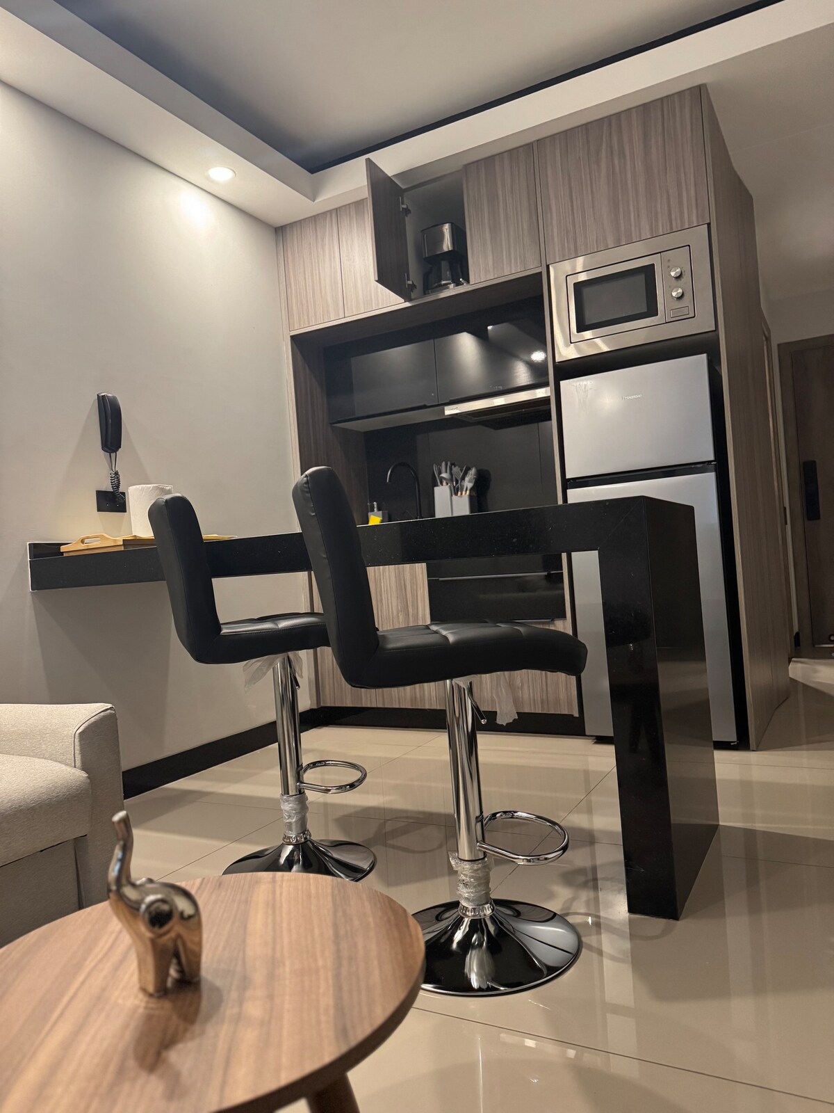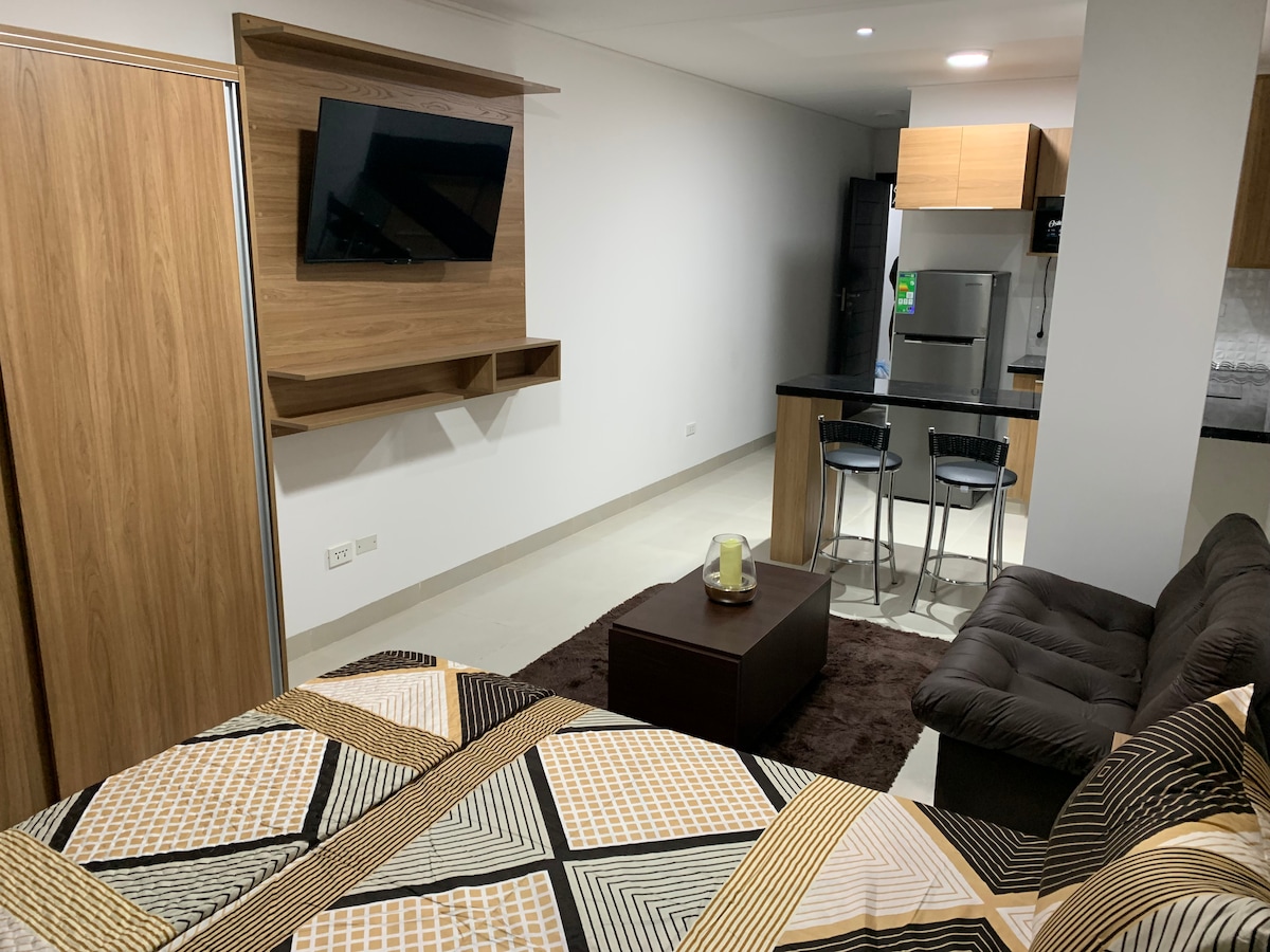 This luxurious studio is located in the Equipetrol neighborhood, Sky Elite Building, one block from the Los Tajibos Hotel; it represents the perfect combination of exclusivity and first-class amenities in the city of Santa Cruz de la Sierra, surrounded by restaurants, shops, cafes, pharmacies and supermarkets. The building offers more than 3,000 square meters of social areas including a modern gym, extensive swimming pool, barbecue, coworking, private movie theater, sauna and whirlpool.