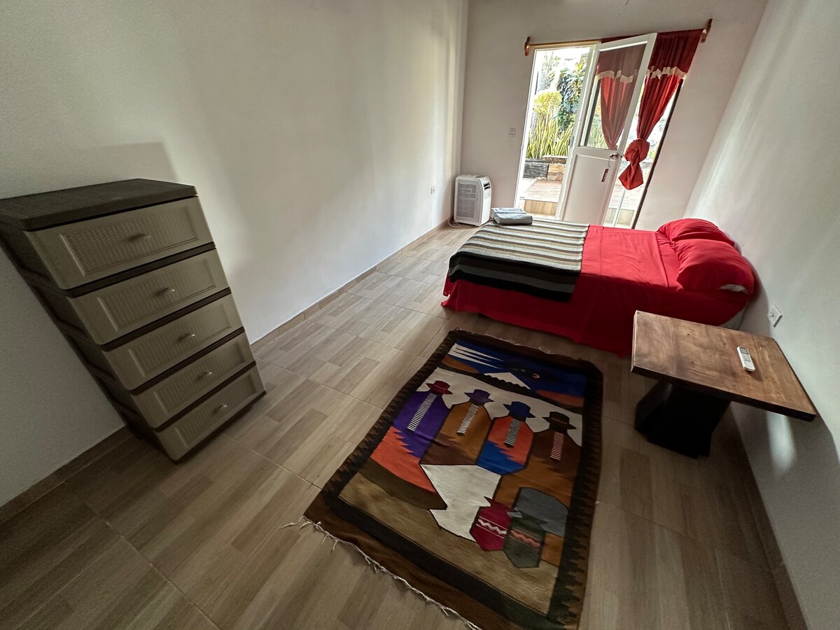 Bienvenido/a a nuestro acogedor departamento, buena ubicación y tranquilidad cuenta con dos cuartos, tres camas de 2 plazas, una cocina equipada, ducha caliente y internet Starlink perfecto tanto para estancias cortas como largas. Proporcionamos toallas limpias, shampoo y jabones en barra para su uso. Estamos ubicados en un sector urbano, casi céntrico, a tan solo 12 minutos a pie del muelle de Santa Cruz Será un gusto recibirte y ayudarte a que tu visita sea una excelente experiencia.
