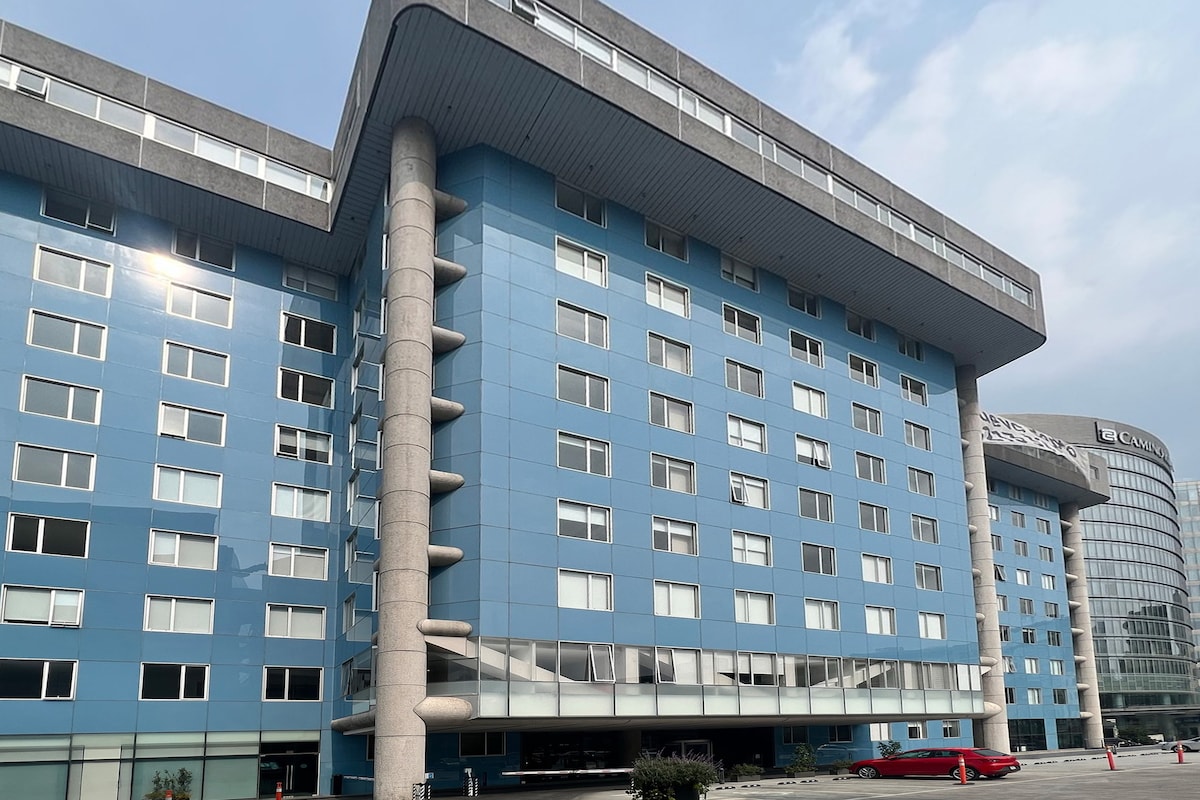 Full apartment with a KING size bed, bathroom and wireless WiFi. Beautiful view of Santa Fe, dining room, kitchen, microwave, refrigerator, washing machine, iron. Covered parking with direct elevators. 24-hour security and surveillance, gym Here you will feel at home, a very cozy place with everything you need for your stay. Mini super in PB, 2 international and Mexican restaurants. Next to Santa Fe, very close to Interlimas, shopping centers, Ibero, Tec, several access roads.