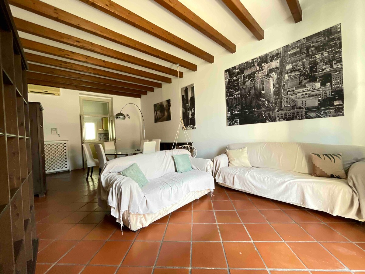 This bright attic is furnished with everything you need for a pleasant stay: a spacious kitchen with cooking utensils, an induction stove, a microwave, a Smart TV, Netflix, Wi-Fi, a Bluetooth speaker, air conditioning, a washing machine, and a comfortable double bed beneath a stunning 12th-century fresco. The entire apartment is available on the third floor (no elevator), in the city's liveliest neighborhood, just five minutes from the subway.