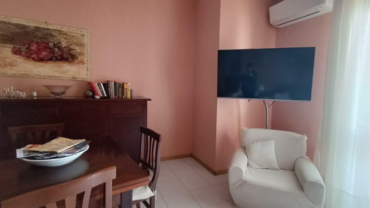 Appartamento climatizzato con due camere da letto, completo di tutti i comfort e di un comodissimo posto auto all'interno del cortiletto privato, proprio davanti alla porta di casa! Nelle immediate vicinanze sono presenti numerosi servizi come supermercati, farmacie, bar e ristoranti. Il mare più vicino dista 15 minuti di auto. Stazione dei treni a soli 600 mt. La sua posizione strategica, insieme a tutte le comodità che offre, rende questa casa una soluzione ideale per ogni genere di soggiorno.