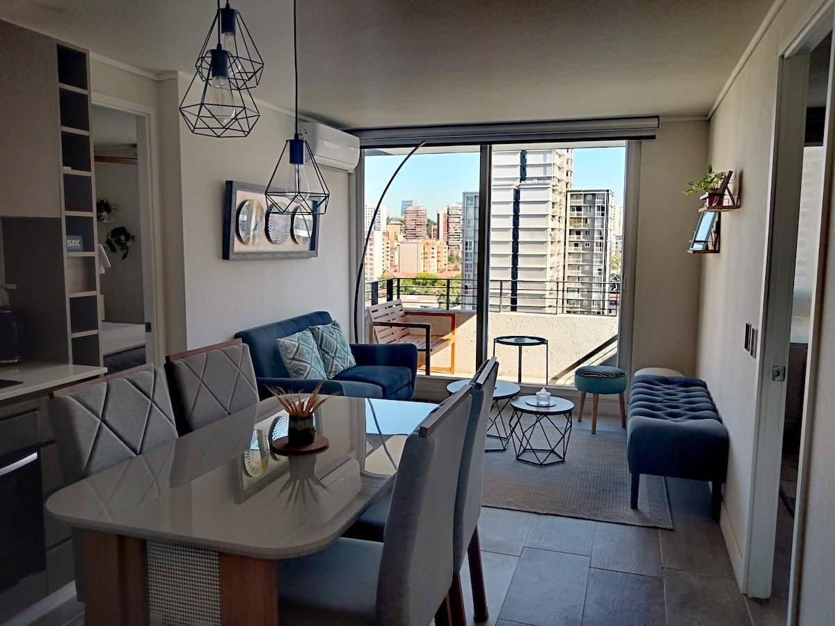 This apartment is ideal for relaxing and enjoying the city. It's centrally located, between the Santiago Centro and Providencia districts, one of the best locations in the city. It offers beautiful views of San Cristóbal Hill and the Sky Costanera. It's just a 3-minute walk from the metro and buses. Includes: Free Wi-Fi, a fully equipped kitchen, sheets and towels included, a large bed with a large Smart TV. Self-service entrance with a key, allowing you to arrive at any time.