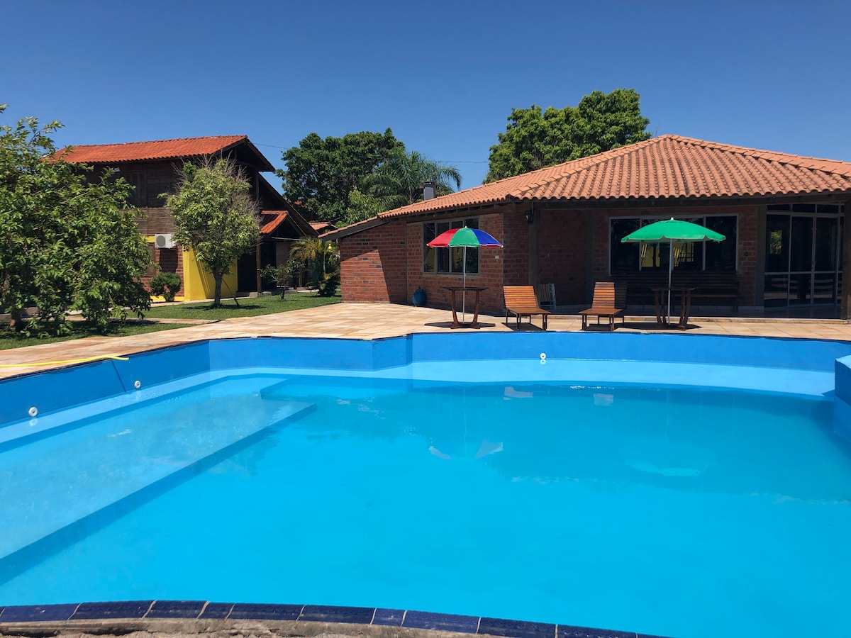 Relax with your family at this peaceful place to stay. Our chalet is located in a quiet neighborhood of Itaara with a good neighborhood and is open to welcome guests in all seasons. It is a fully open cabin/loft-style chalet, ideal for couples or families with children. It has a double bed and two single mattresses on top, and a sofa bed on the bottom. Comfortably accommodates 4-5 people. We do not rent for parties. Large patio with swimming pool, fireplace and barbecue.