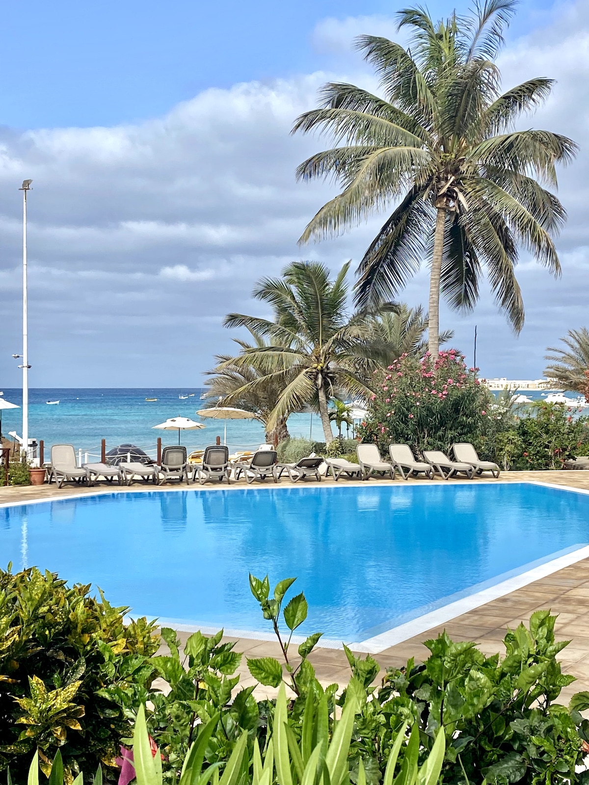 Located just steps from the beach at Sal (Cape Verde), this is the perfect place to relax, soak up the sun, and enjoy the ocean breeze. Walk to the city center of Santa Maria in 5 minutes or take a refreshing swim in the rooftop pool. The apartment has everything you need to make you feel comfortable on the island where 'No Stress' is the vibe such as: - Airconditioning - Washing machine - Fully Equipped kitchen - Smart TV - Hammock Book your stay now and experience Cape Verde at its finest!
