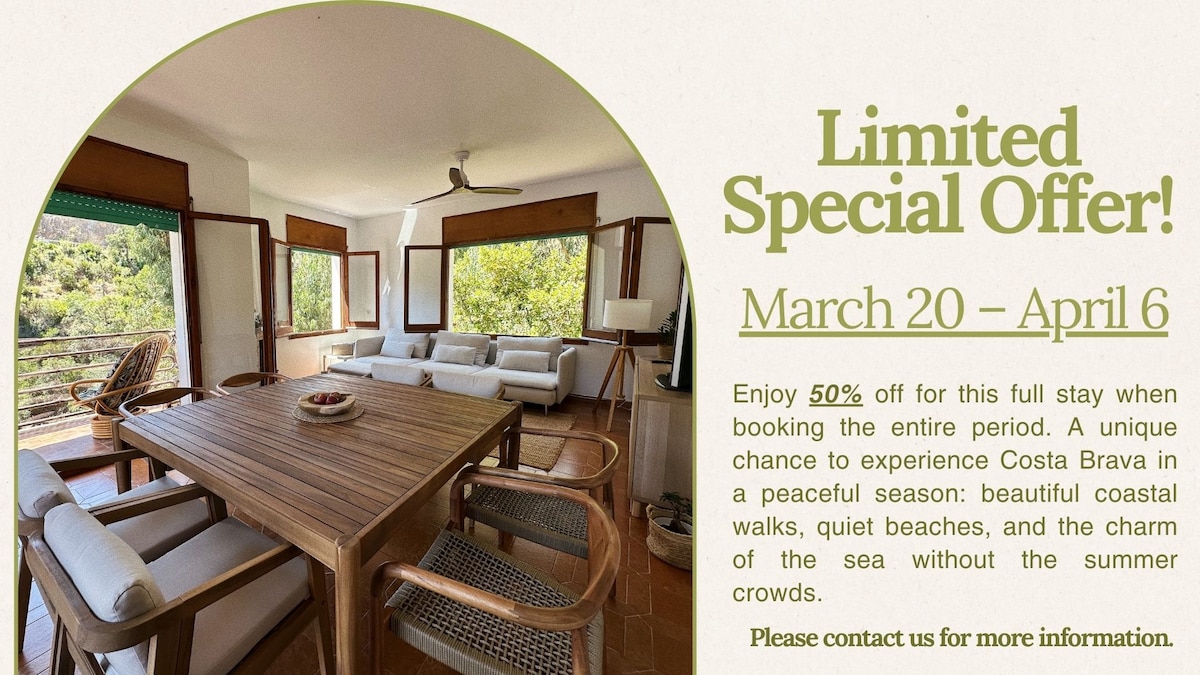 🌿 Escape to the heart of the Costa Brava and stay in this majestic Indian-style house located in the historic center of Begur, just a few steps from the castle and the main square. Perfect for families, groups of friends, or couples, this historic home offers an authentic, comfortable, and charming experience. You can enjoy views of Begur Castle, while being surrounded by restaurants, shops, and the vibrant local life. An ideal place to unwind and immerse yourself in the Mediterranean essence.