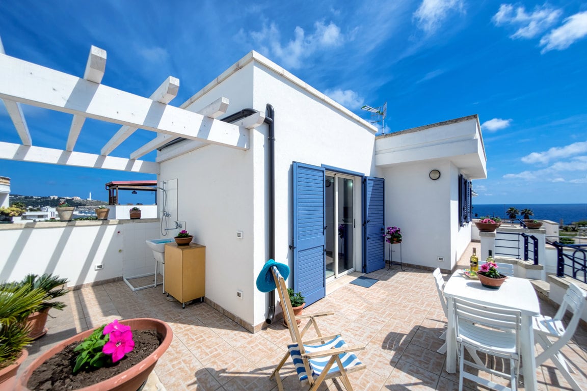 Located in S.M. di Leuca, in the southernmost point of Salento, "Appartamento Porto Grande" enjoys a wonderful 360° sea view. The apartment is equipped with all amenities such as air conditioning, heating, Wi-Fi, private parking, terrace and jacuzzi with a view.