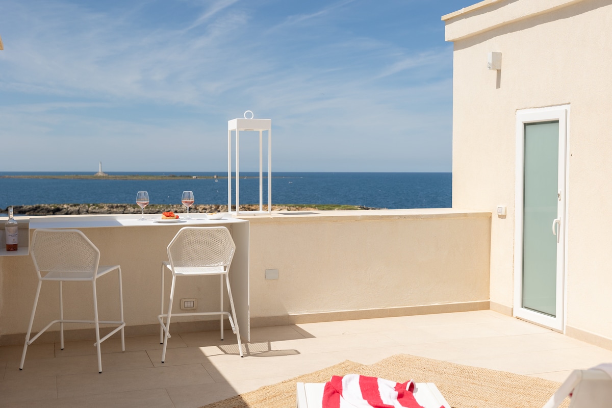 The "Sunrise" apartment - Terrace overlooking the blue Otranto, is located in an exclusive position, 10 meters from the sea and the descent to the beach is under the house! It is equipped with every comfort, including Wi-Fi and air conditioning in every room. From the large terrace and balcony, you can admire the sea and the city of Otranto in all their beauty, and your vacation will be like living a dream with your eyes open! NB: on my profile, the other adjacent apartment is also available