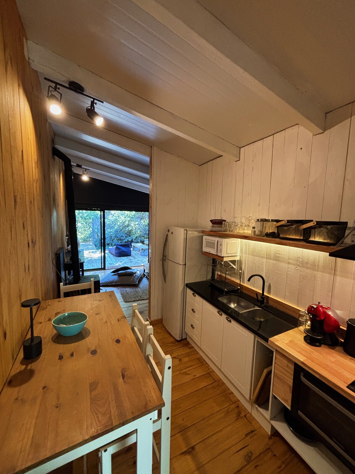 Relax in this unique and quiet getaway. 5 minutes from José Ignacio, this charming retreat is in the Santa Monica forest area. The space offers maid service every 3 days. It is a small cabin with a living room and exit to the deck, a well-equipped kitchen and a bedroom with its en-suite bathroom. It has air conditioning in the bedroom, wifi and linen. Two bicycles available.