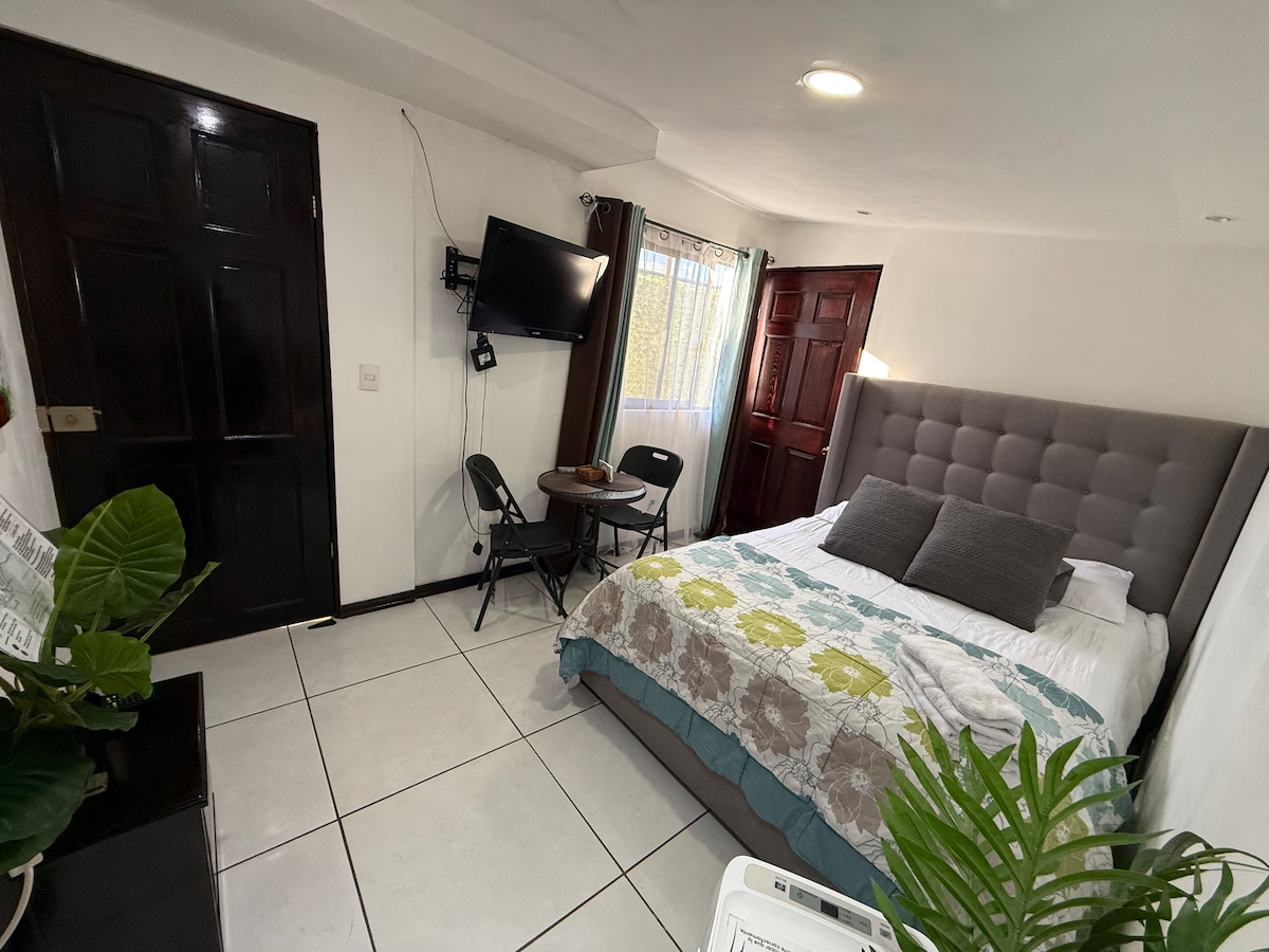Apartment located in Urbanización la Favorita. It is very central and enjoys parks, restaurants, clinics, Mexico/Cima hospitals, supermarkets, embassies and airports nearby. Very close to the US Embassy and Canadian Consulate. The bedroom is equipped with an additional area for recreation or work. 24/7 security. Bathroom with hot water. Quiet neighborhood. Refrigerator, microwave, coffee maker, electric frying pan, one-burner stove, rice cooker and water heater. Excellent WIFI