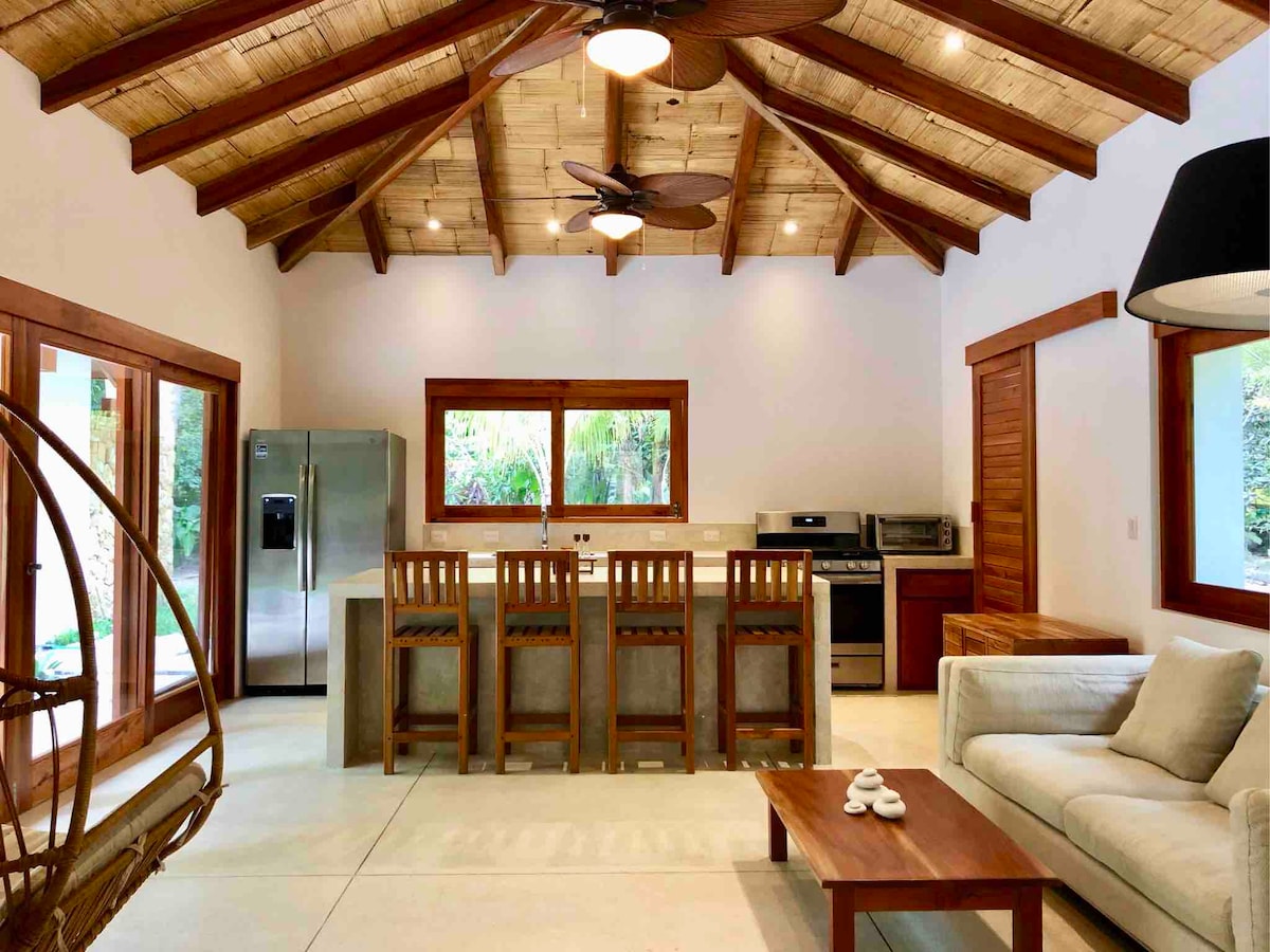 The location of the "Mid Tide Bungalow - Surf Casitas" is just perfect! 2 min walking distance from one of the nicest beaches and best surf spot of Santa Teresa: "Villa Paraíso". You can relax on the beach reading a book under a palm tree, or surf the best waves in town! Our bungalow counts with one bedroom with a king size bed, ensuite bathroom, kitchen and nice terrace.
