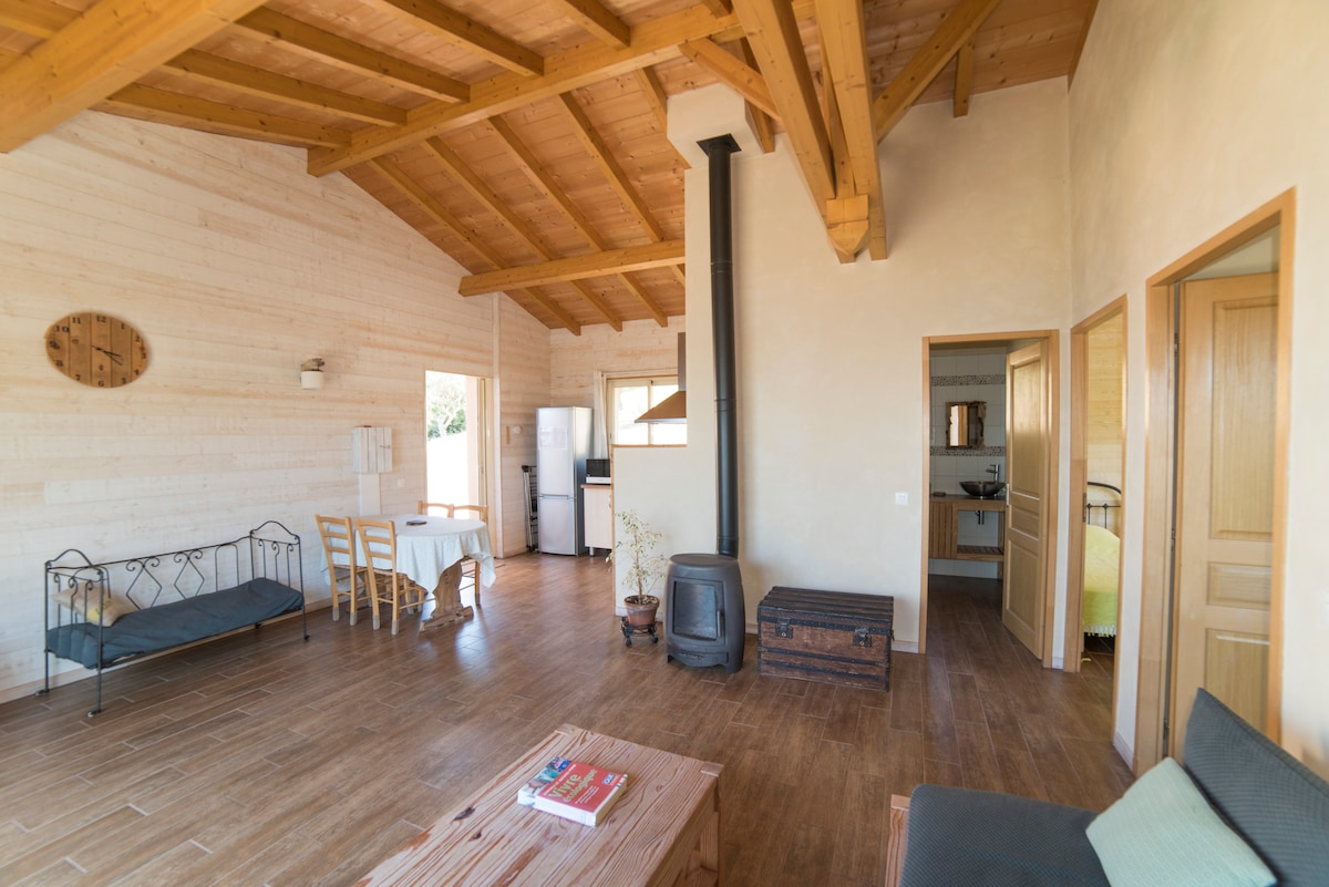 Welcome to La Bergerie, an eco-lodge nestled in the heart of the Corsican mountains. A peaceful retreat where nature, silence and comfort meet. The house sleeps up to 6 guests: two upstairs bedrooms and a bright living room with sofa bed. Fully equipped kitchen, modern bathroom and linen provided. Tea, coffee, chocolate, spices and olive oil await you. In cooler seasons, the wood stove warms cosy mountain evenings.