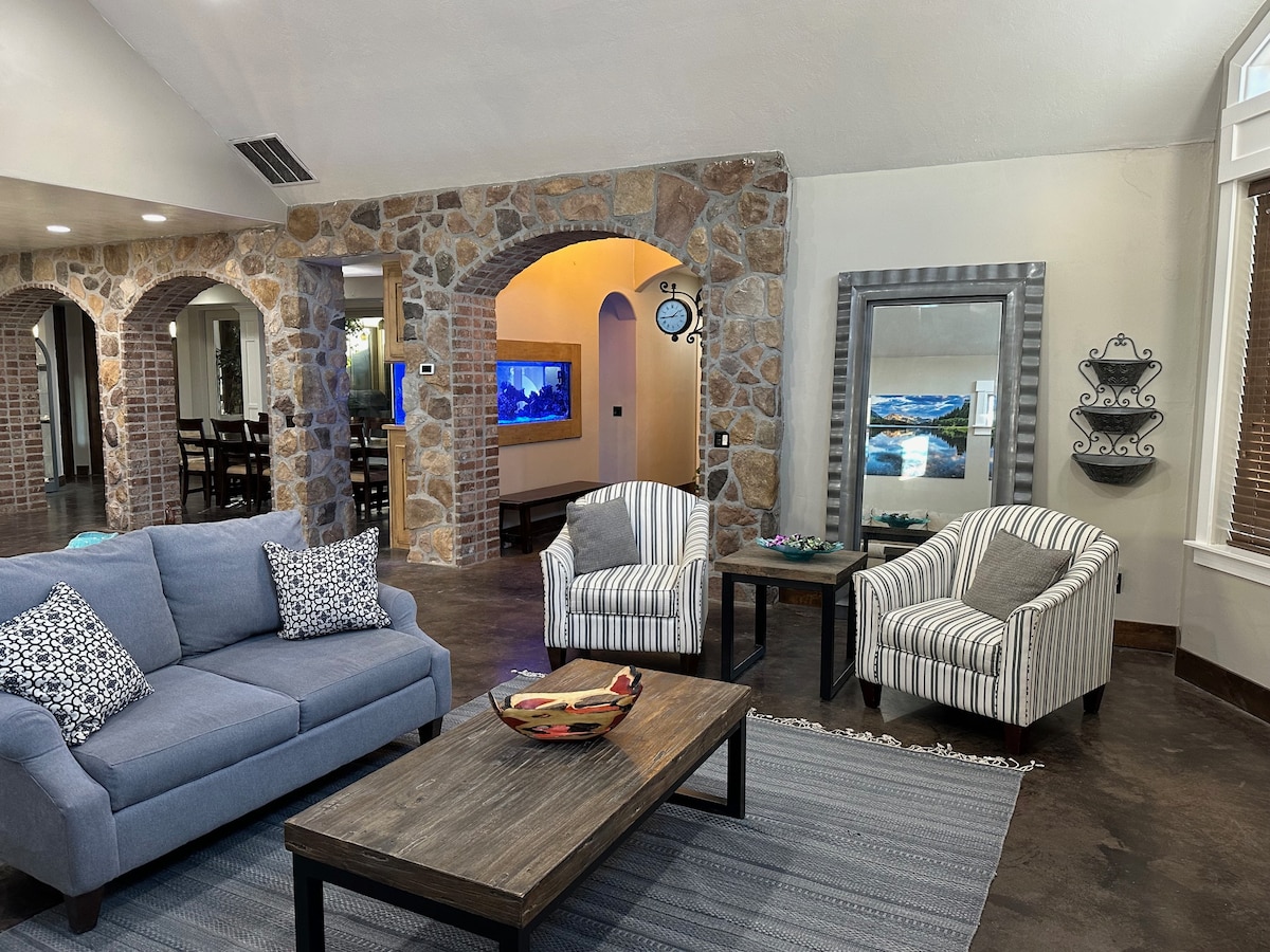 Also known as the Hogwarts Castle, this Draper home follows a traditional luxury style. Stay in our Luxury Guest house apartment that is attached to a modern-day 24k sq ft Castle. No expense was spared on this guest house. Enjoy the beautiful sunsets looking over the Draper Temple and Salt Lake Valley. Take a hike or mountain bike ride on one of the many trails directly behind the home. Within 45 minutes from Ski Resorts in the Park City and Sundance area. Central to 3 valleys.