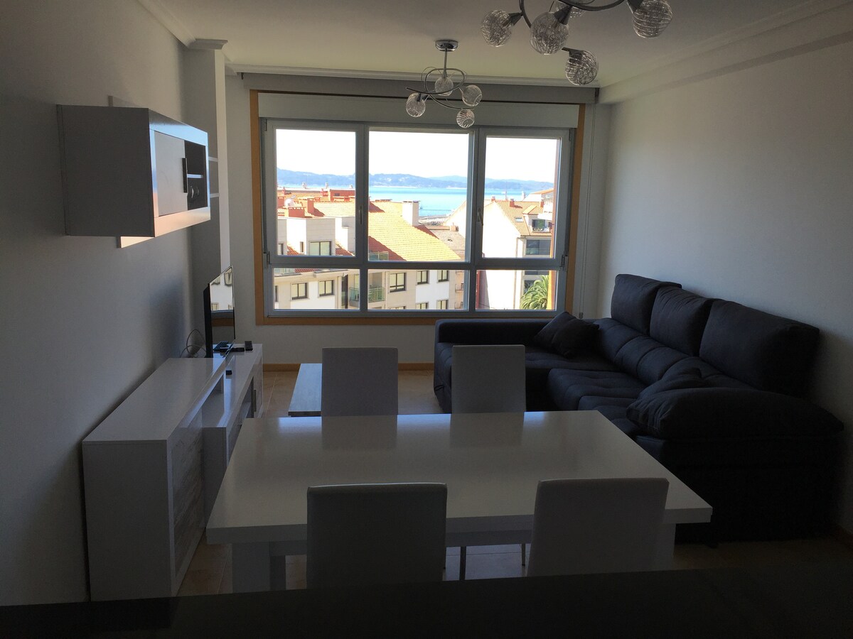 Enjoy the amazing all day island views of the Ría de Arousa from our brand new corner apartment on the 2nd floor, boasting large windows on 3 sides. Have breakfast, lunch, dinner (or a siesta :) while looking at your "private" pine forest and beach...