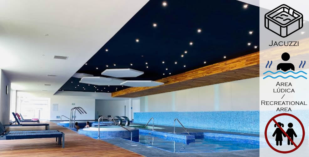 Biosphere Towers, Juriquilla Modern apartment with 2 bedrooms, 2 bathrooms and an equipped kitchen. Includes internet and Smart TVs, comfortable sofa bed in the living room. Family Amenities: Pool, Playroom, paddle tennis court and Ping Pong. Adults Only Amenities: Jacuzzi, Swimming Lane, Gym, Sauna and Steam. Ideal for resting or working. Located near shopping centers and roads in Queretaro's best area.